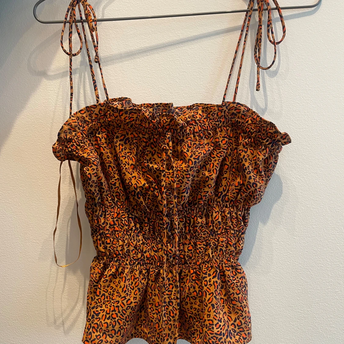 Säljer en superfin leopardmönstrad topp med smala axelband som knyts. Toppen är har en elastisk midja för en bekväm passform. Perfekt för sommardagar eller en utekväll!