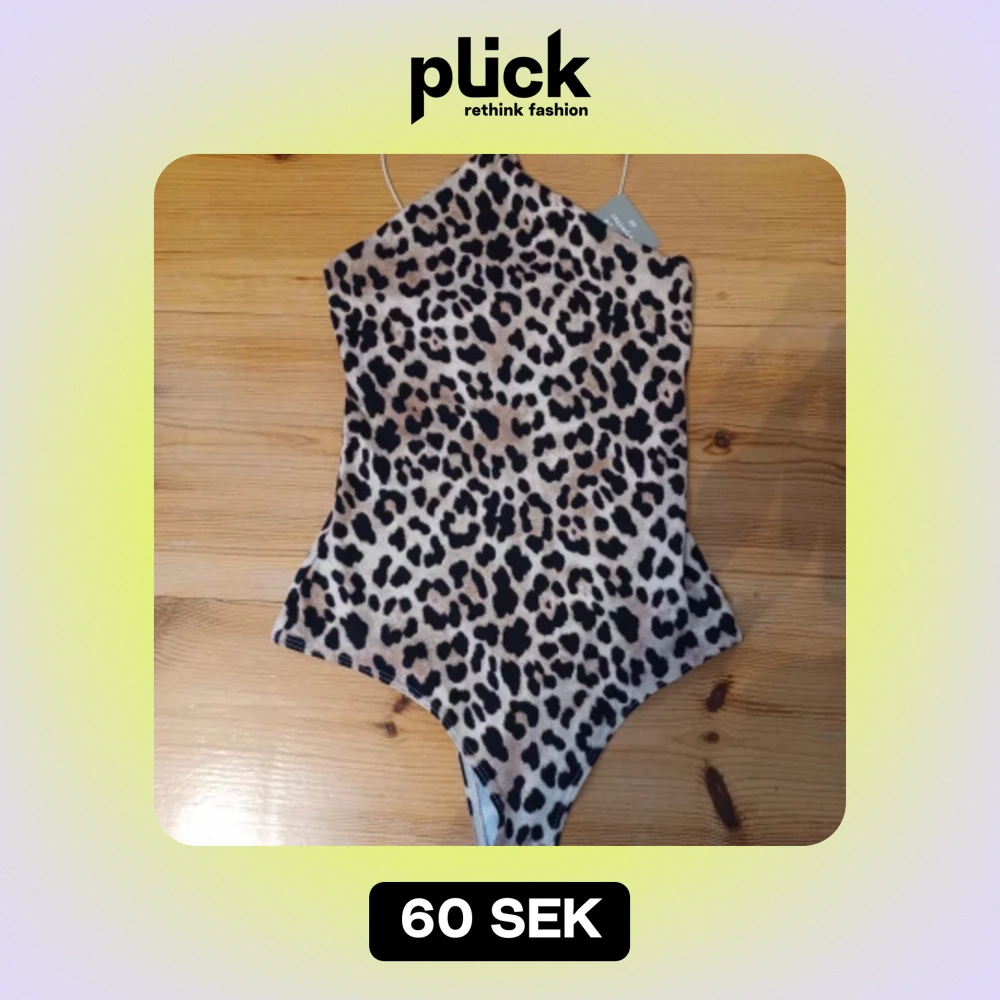 En leopardmönstrad body från H&M tillverkad av 87% återvunnen polyester. I storlek XS. Den är HELT ny med prislapp kvar. Nypris 99 kr, säljer för 60 kr.