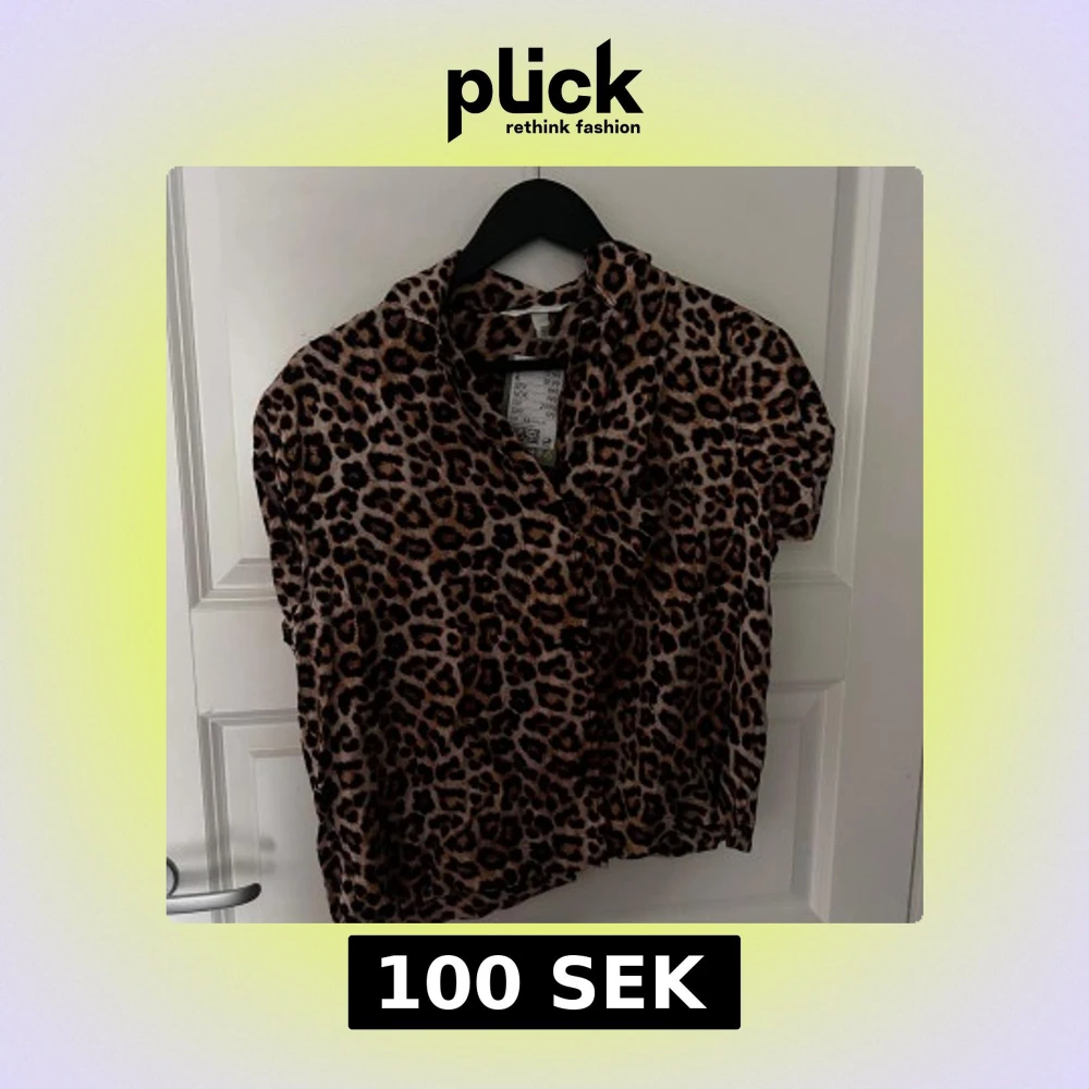 Säljer en trendig leopardmönstrad blus med korta ärmar. Perfekt för att ge din outfit en djärv touch. Blusen har en klassisk krage och är gjord i ett mjukt material som känns skönt mot huden.