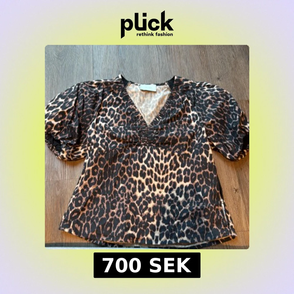 Säljer en snygg blus från Neo Noir med leopardmönster i svart och beige. Blusen har puffiga korta ärmar och en djup v-ringning med rynkade detaljer. Materialet är mjukt och lätt, perfekt för att sticka ut med coola vibes. Det sitter även en dragkedja på sidan
