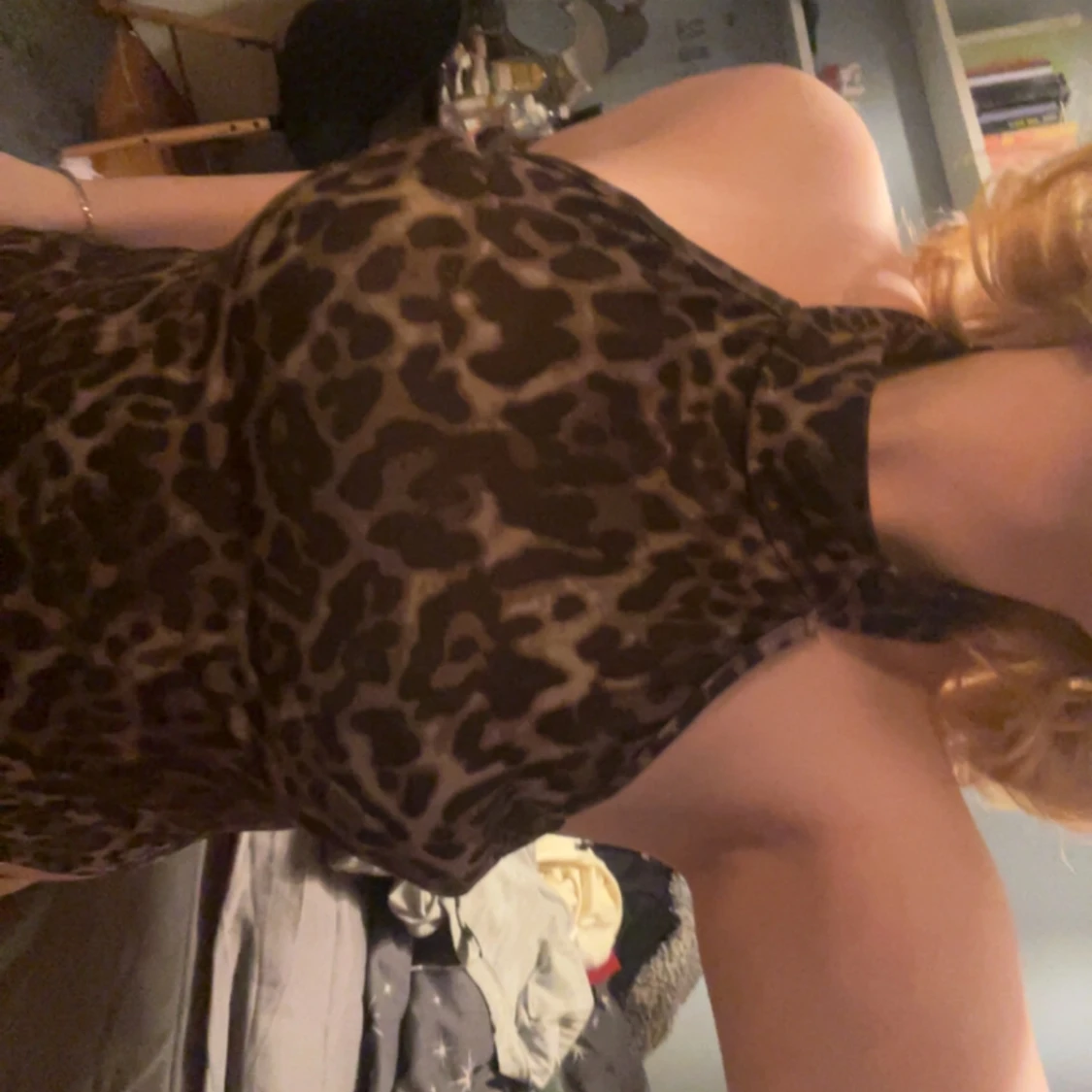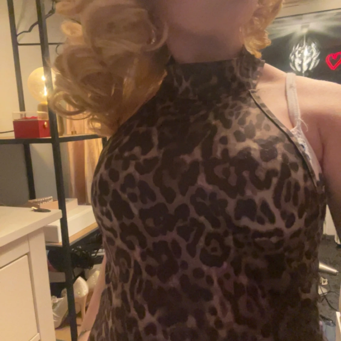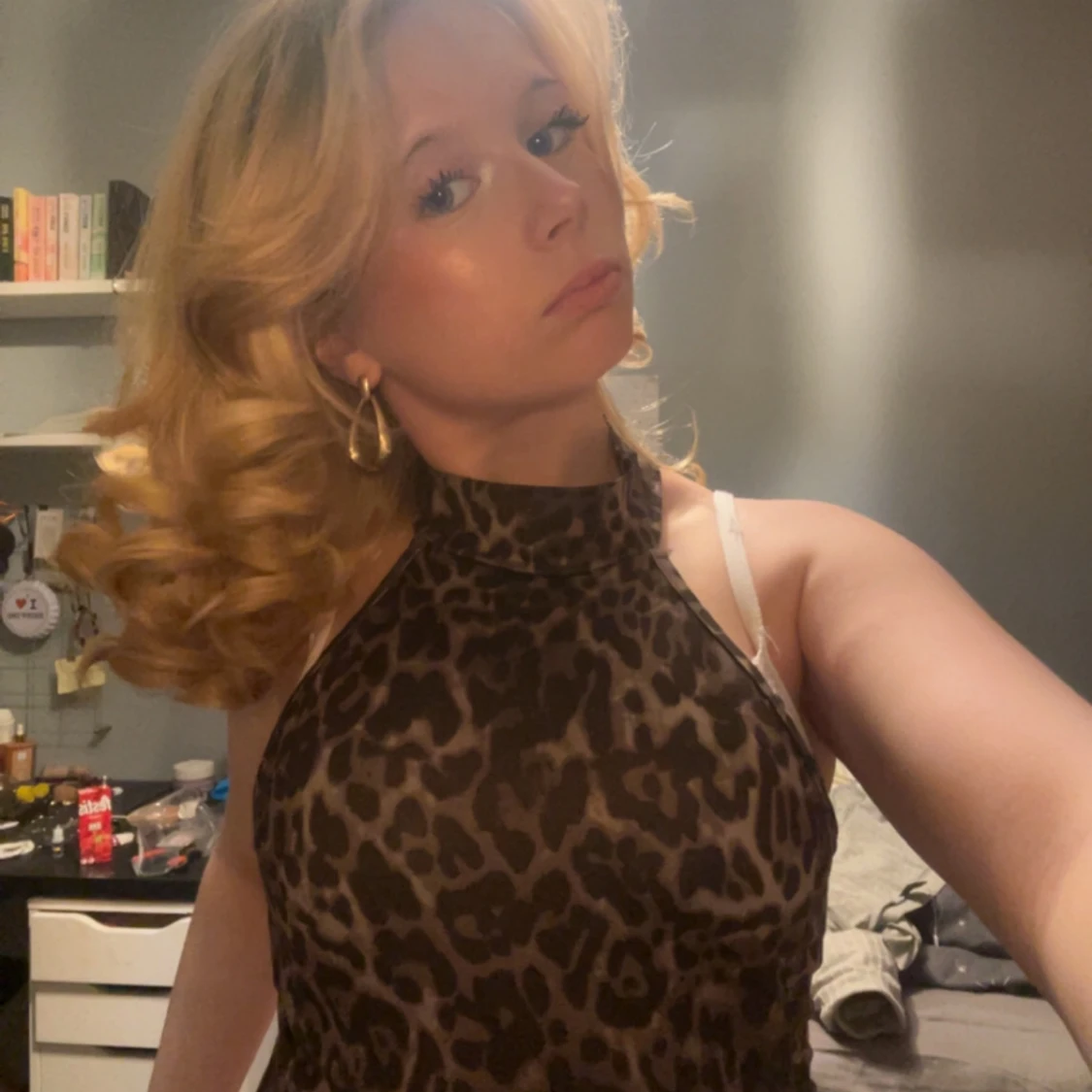 Snygg leopardmönstrad halterneck topp med hög hals. Perfekt för en trendig look. Toppen är ärmlös och har en tight passform.