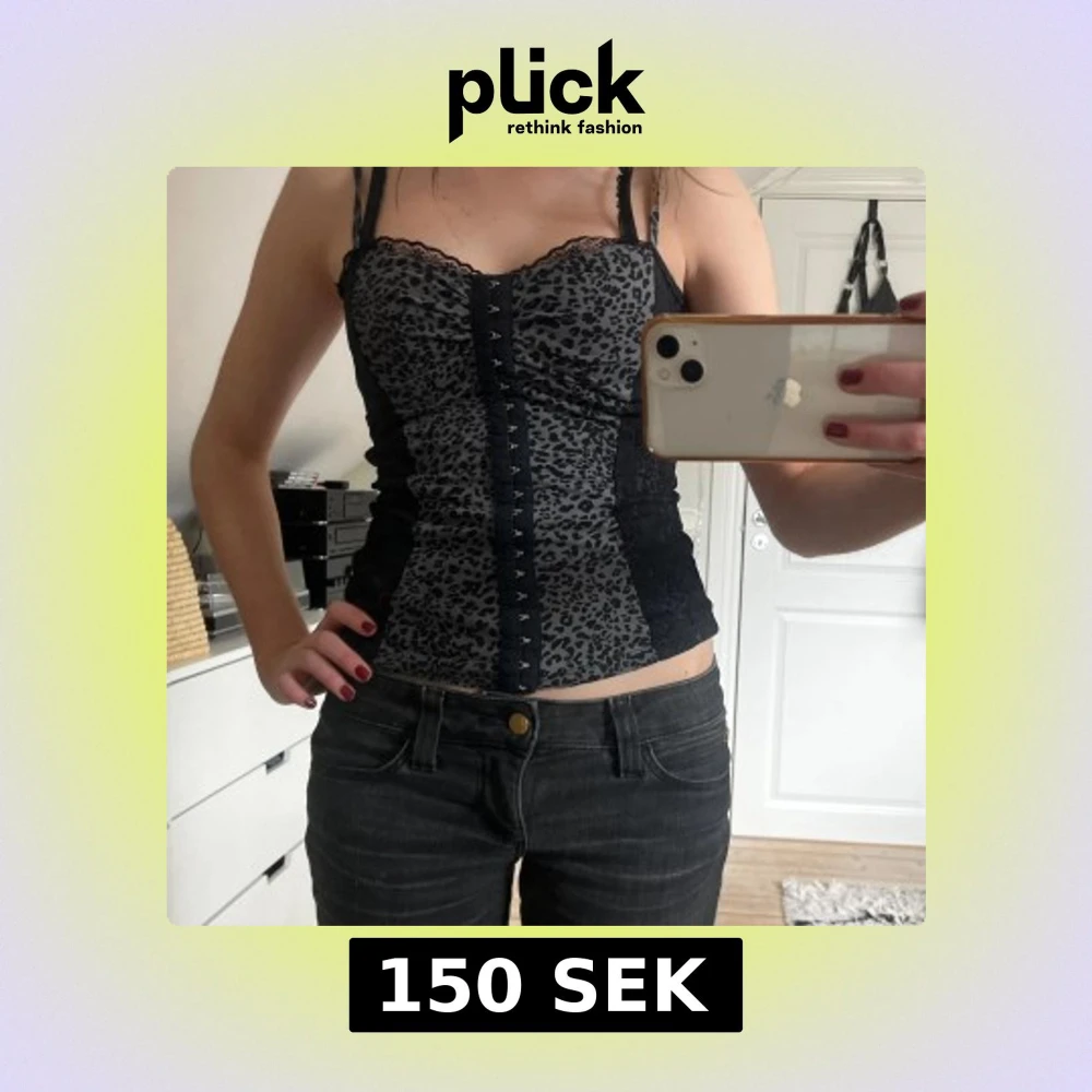 Snygg leopardmönstrad korsettopp med spetsdetaljer och smala axelband. Lappen är borta men uppskattas som xs/s i storlek!! Bra skick, knappt använd
