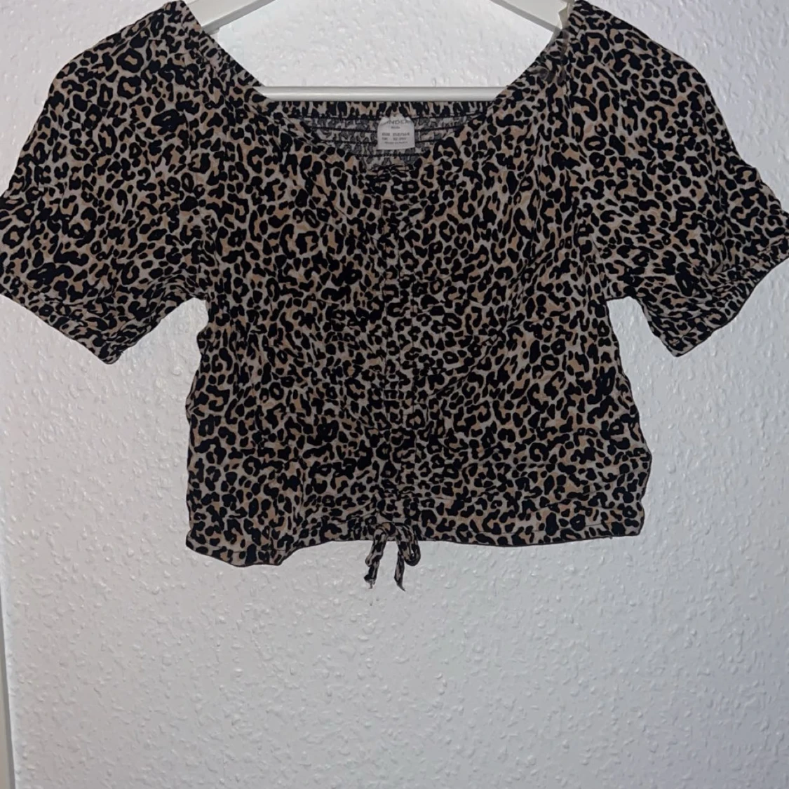 Säljer en leopardmönstrad kortärmad topp från Index. Toppen har en snygg knytning framtill och är perfekt för en trendig look. Passar storlek 158/164. Man får en enorm snygg form.