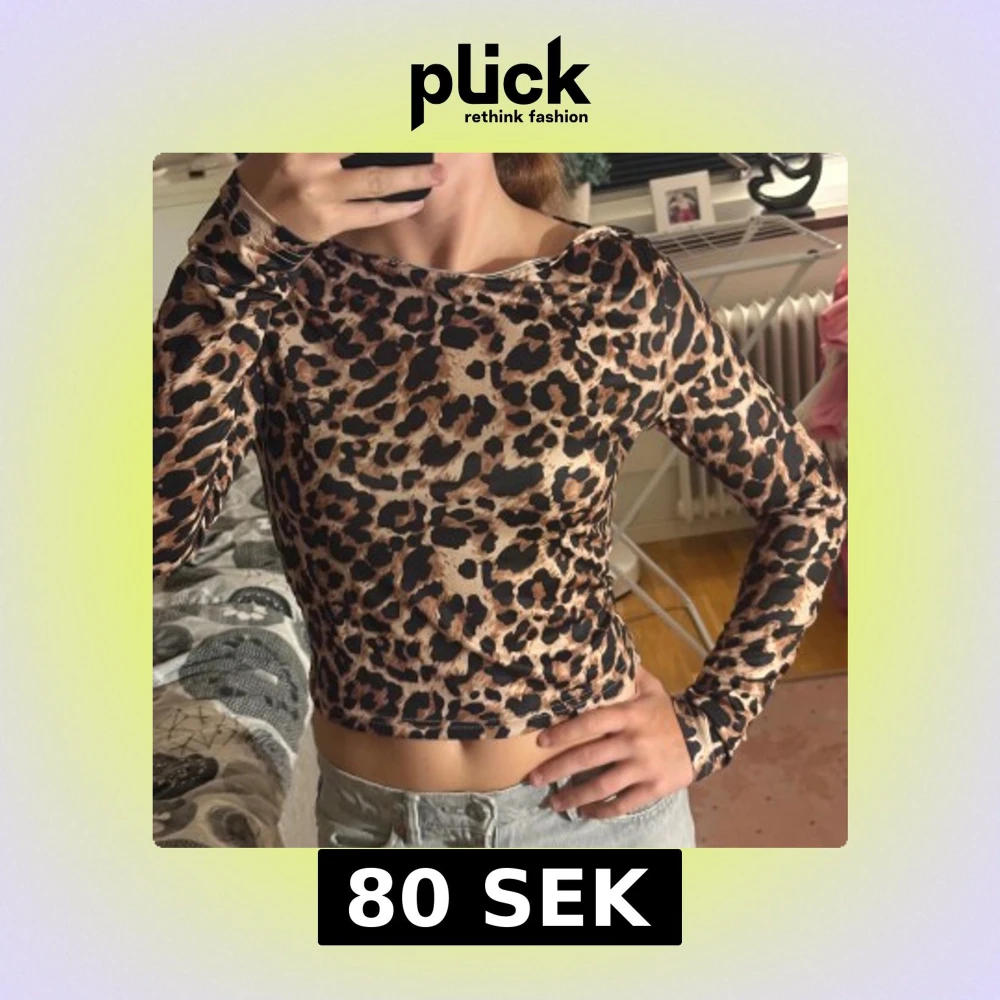 Säljer en snygg långärmad topp med leopardmönster i beige, brunt och svart. Modellen är croppad och har en tight passform med rund halsringning. Perfekt för dig som vill sticka ut lite extra. Aldrig använd jättefint skick