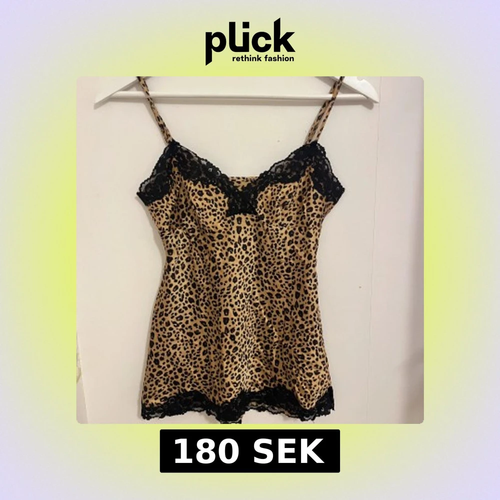 Leopardmönstrat linne med svarta spetsdetaljer vid halsringningen och nederkanten. Den har tunna axelband och en figurnära passform. Skriv om ni har några frågor❤️🔥❤️🔥//YourVintage