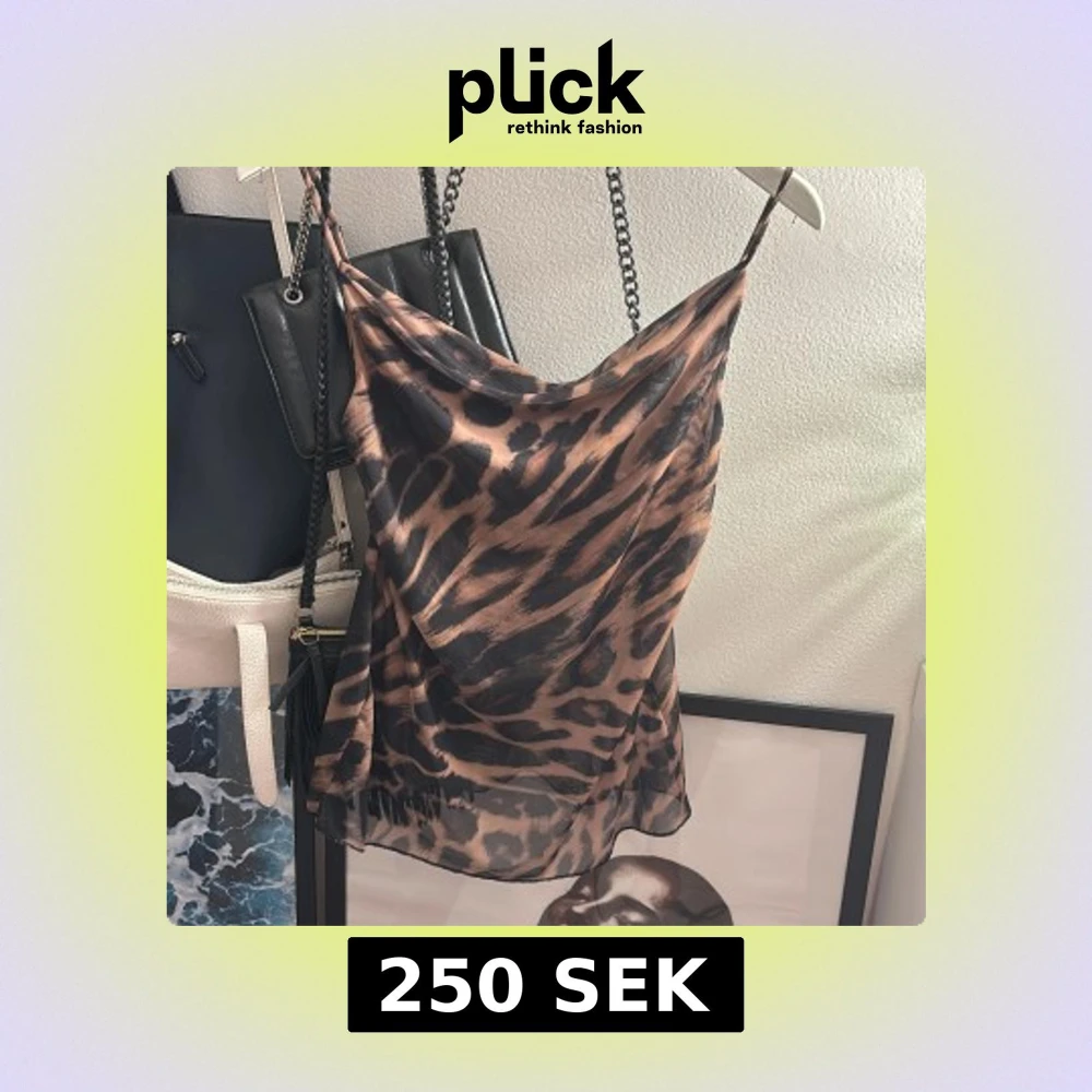 Säljer en sjukt snygg leopardmönstrad linnetopp med tunna axelband och draperad halsringning. Toppen är i ett lätt och transparent syntetmaterial som ger en cool vibe. Färgerna går i brun och svart, perfekt för att sticka ut. Passformen är loose och toppen är ärmlös. Nästan aldrig använd!!