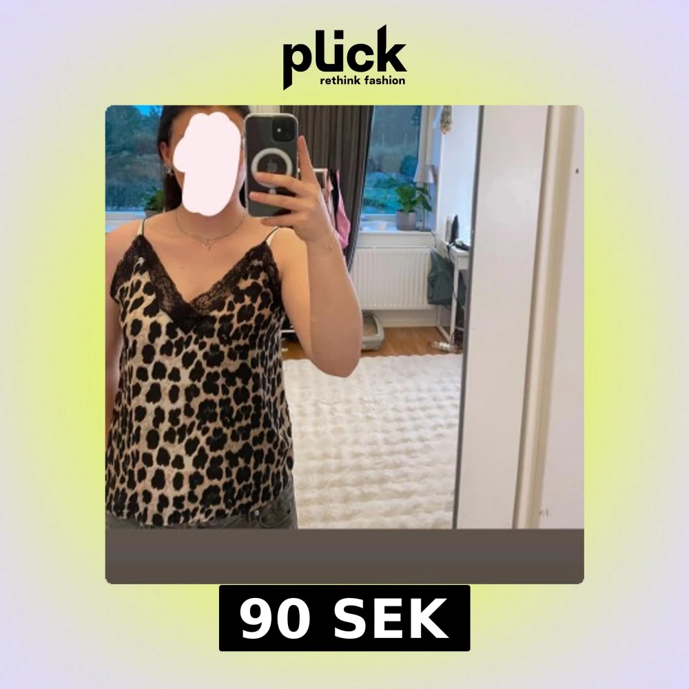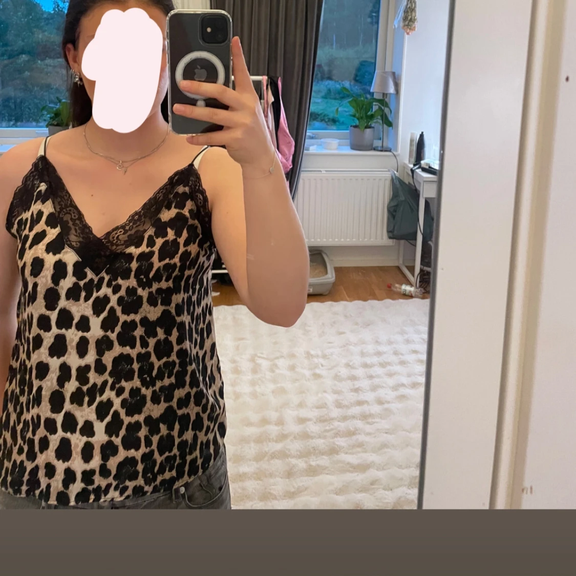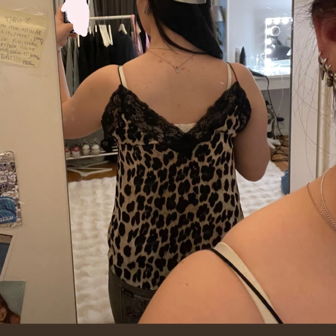 Säljer en snygg leopardmönstrad linnetopp med tunna axelband och v-ringning. 💗