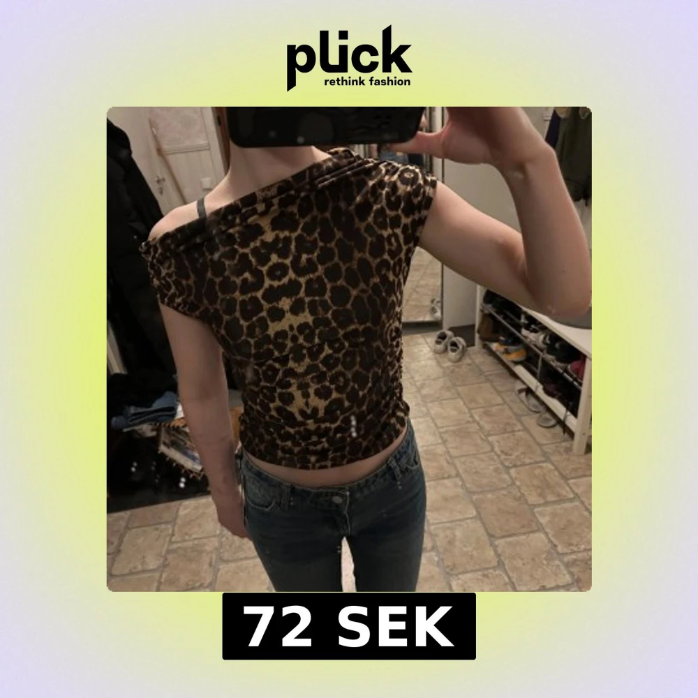 Snygg leopardmönstrad offshoulder topp med rynkade detaljer. Perfekt för en trendig look. Toppen har en tight passform och är tillverkad i ett mjukt material som känns skönt mot huden.