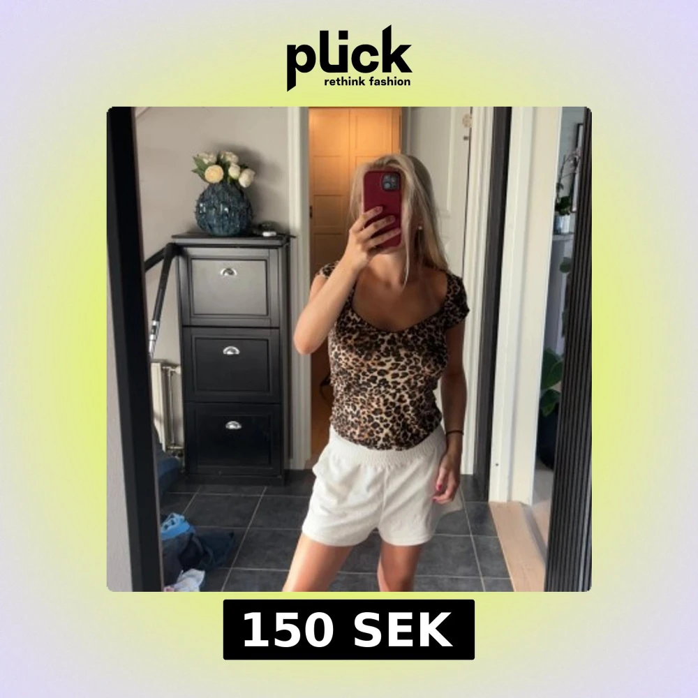 Säljer en snygg leopardmönstrad topp med korta ärmar och v-ringad hals. Toppen är figurnära och har en cool brun och svart färgkombination som verkligen sticker ut. Perfekt för dig som vill ha en trendig och djärv look.