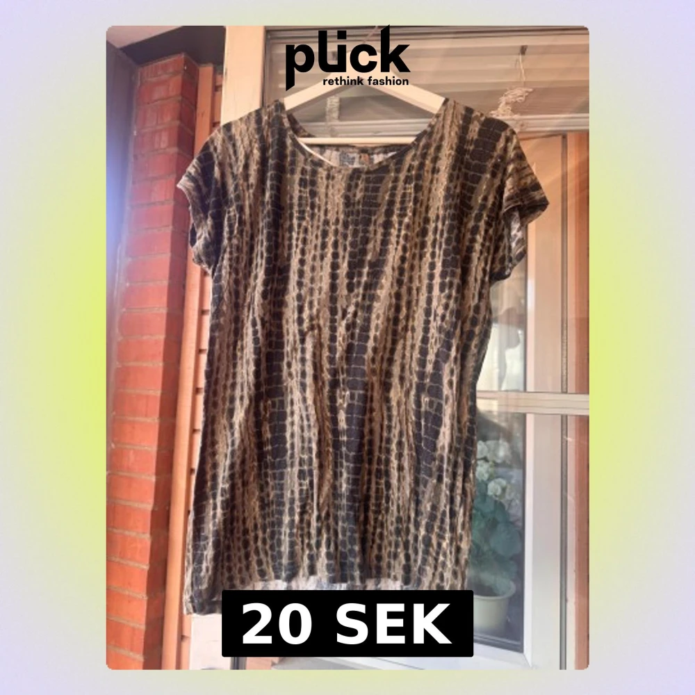 Säljer en topp med leopardmönster i svart och beige toner. Modellen är loose fit med rund hals och korta ärmar. Materialet känns mjukt och lätt. Storlek XS
