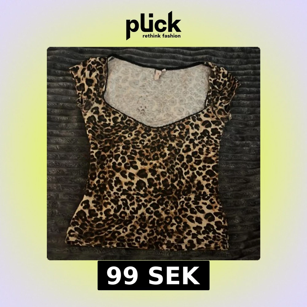 Säljer en slim leopardmönstrad topp från Nelly i storlek S. Toppen har korta ärmar, v-ringad hals och är gjord i mjuk, stretchig polyester. Färgerna går i beige, brun och svart med ett djärvt leopardmönster som sticker ut.