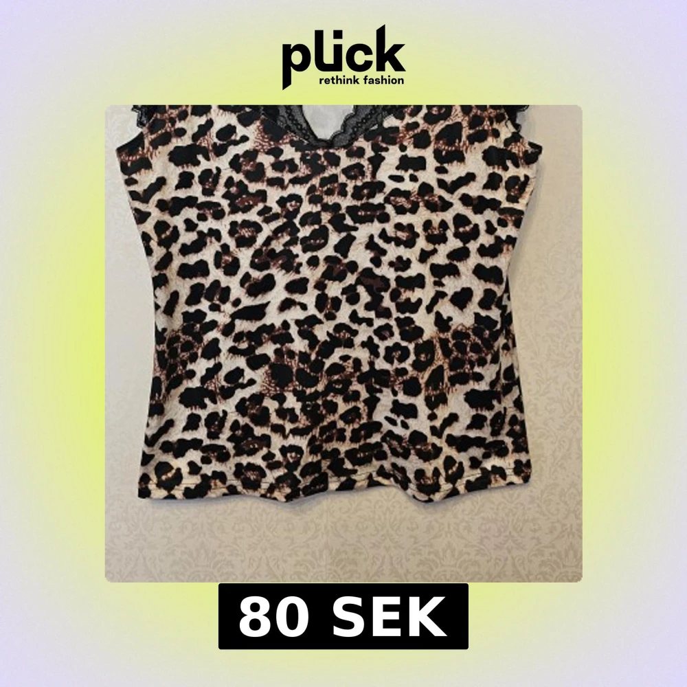 Säljer en snygg leopardmönstrad topp med svarta spetsdetaljer vid ärmar och v-ringning. Toppen har en figurnära passform och är ärmlös med spets som ger en extra touch. Perfekt för dig som vill sticka ut med ett djurmönster och coola detaljer.
