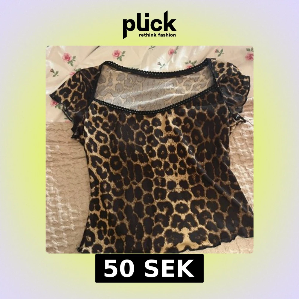 Snygg leopardmönstrad topp med spetsdetaljer vid halsringningen. Toppen har korta ärmar och en elegant design som passar perfekt för en trendig look.