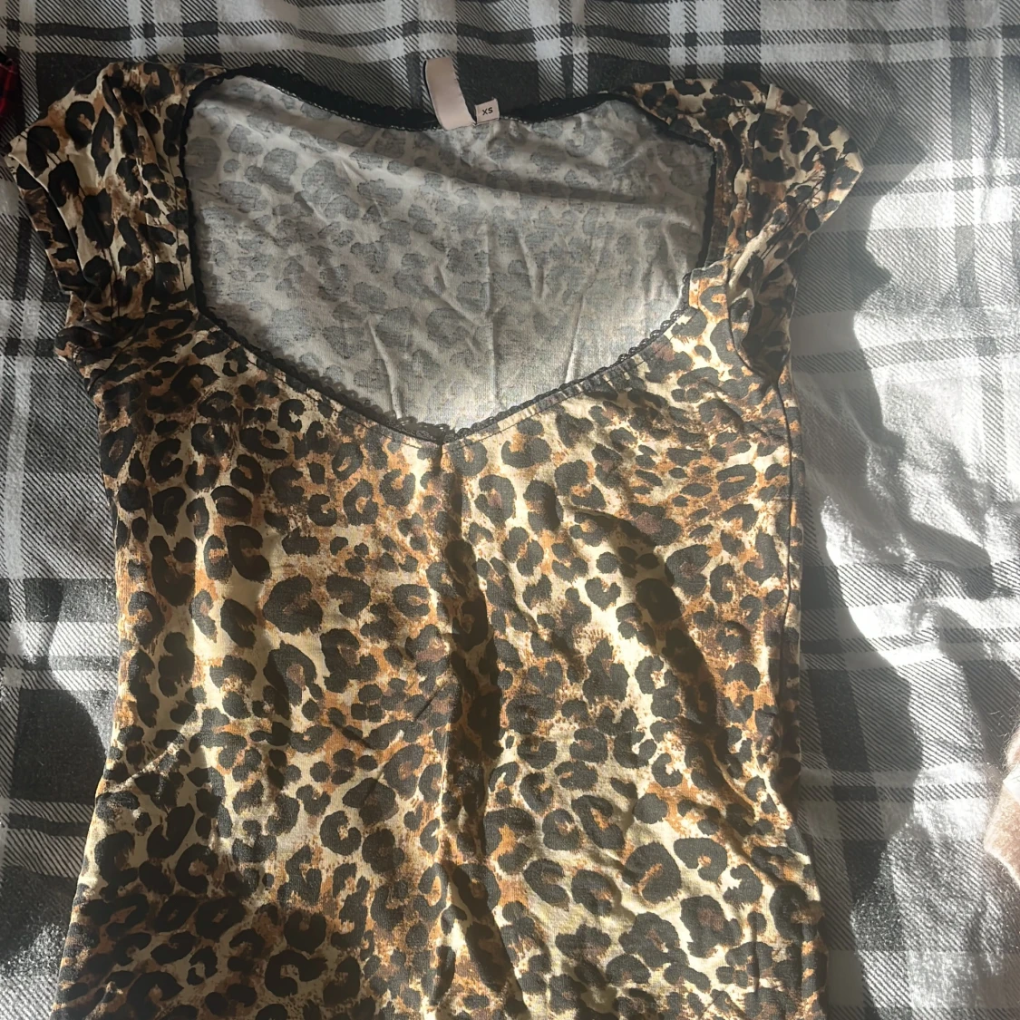 Cool topp i leopardmönster med v-ringad hals och korta ärmar. Tunt och mjukt material som känns skönt mot huden. Perfekt för dig som vill sticka ut med ett djurmönster och en snygg passform.