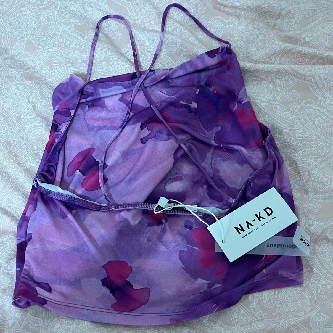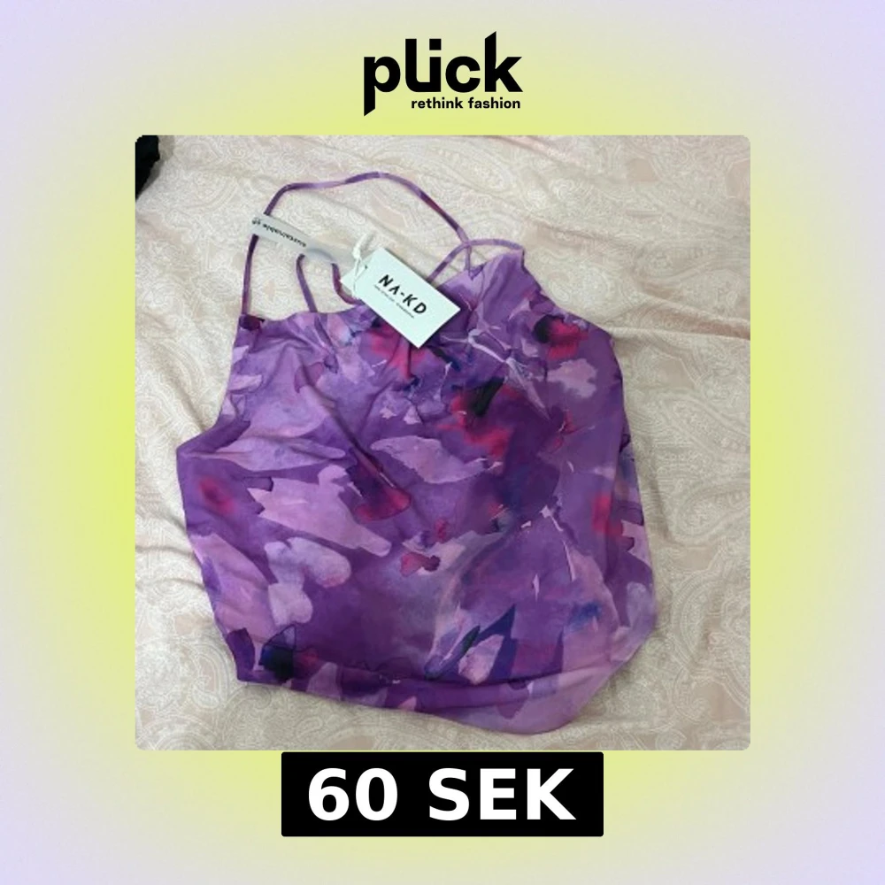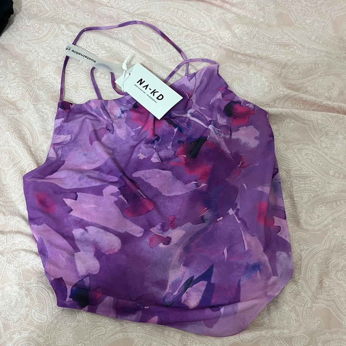 Supersöt linnetopp från NA-KD med blommigt mönster i olika lila och rosa nyanser. Tunt och lätt material med smala axelband och croppad passform. Perfekt för sommarens alla tillfällen när du vill sticka ut lite extra.