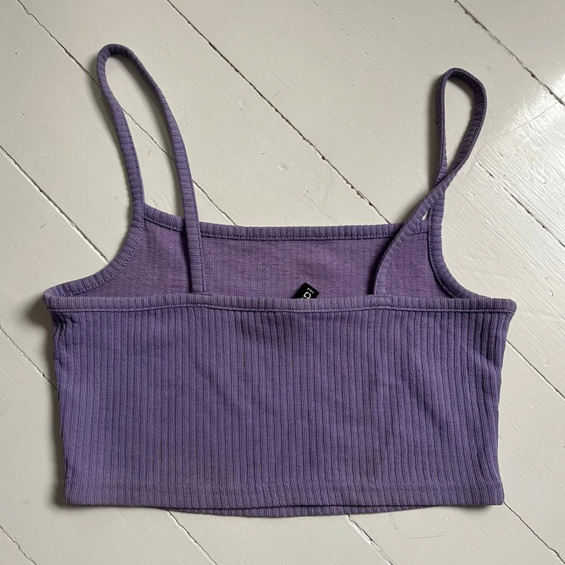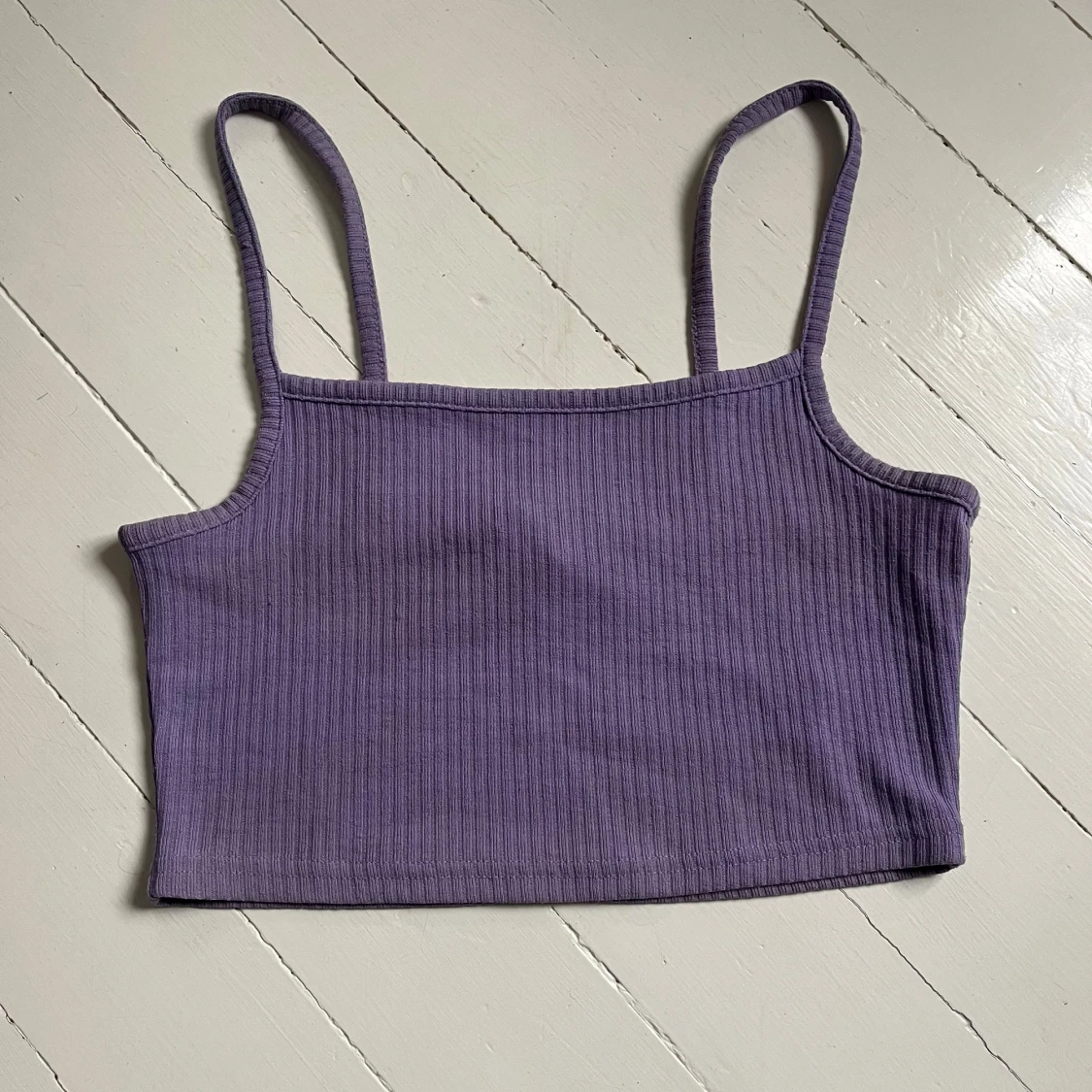 Säljer en lila ribbad linnetopp med smala axelband och rak halsringning. Toppen är croppad och har en enkel, stilren design som passar perfekt till sommaren. Blir billigare vid köp av flera. Skriv för flera bilder💜