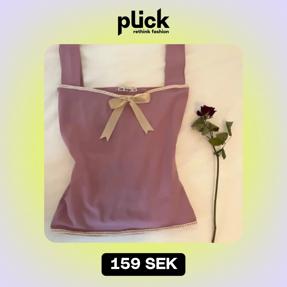 Ljuslila topp med spets och rosett, stretchig och av hög kvalitet💗