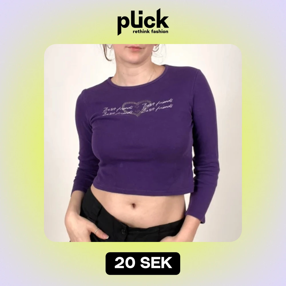 Gullig 2000s topp med tryck. Egentligen en barntopp. Jag på bilden är 170cm och har strl 36 på överdelar. Klicka på köp nu <3