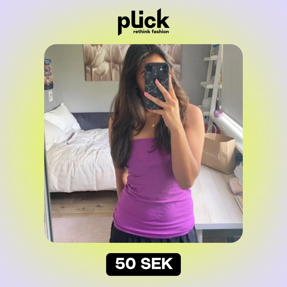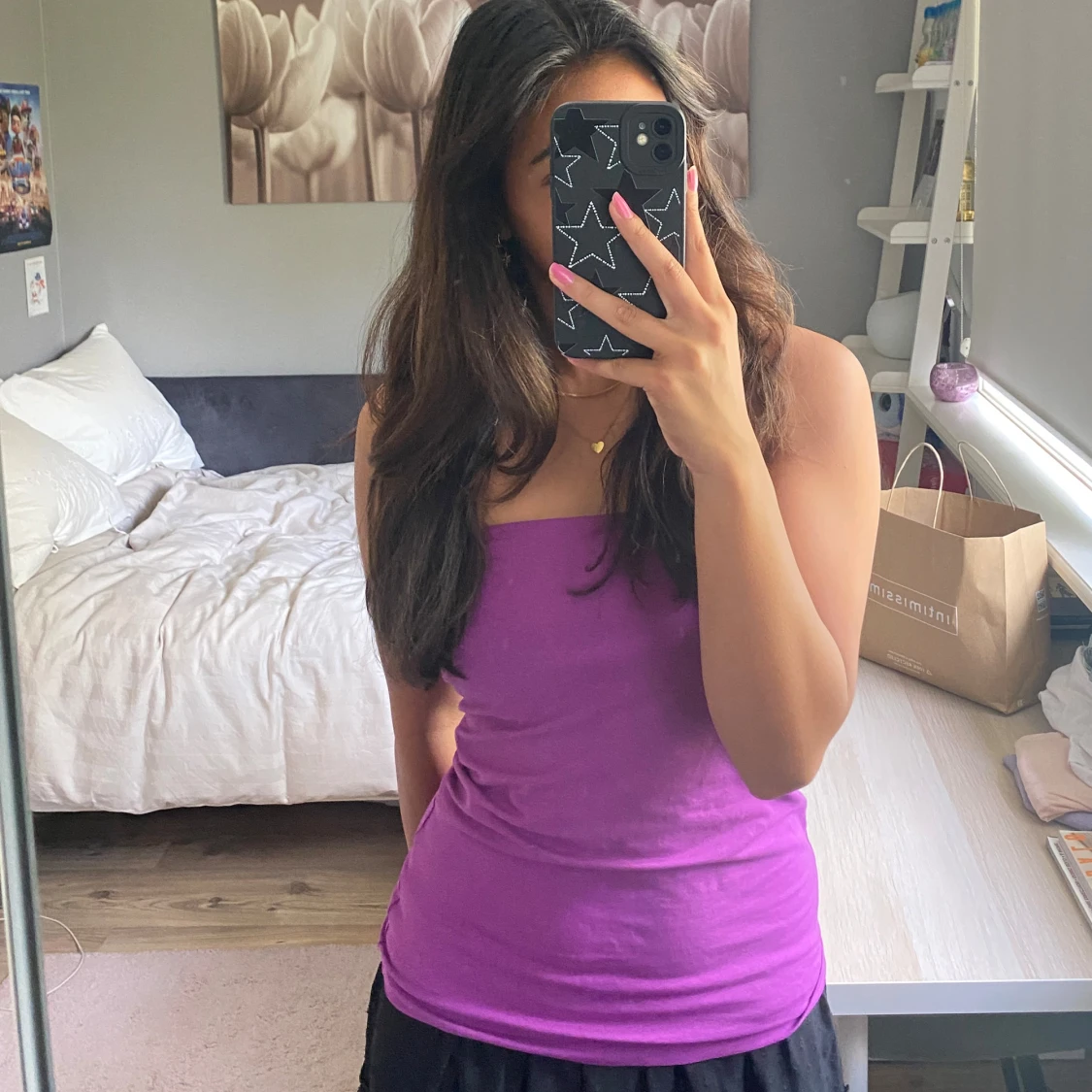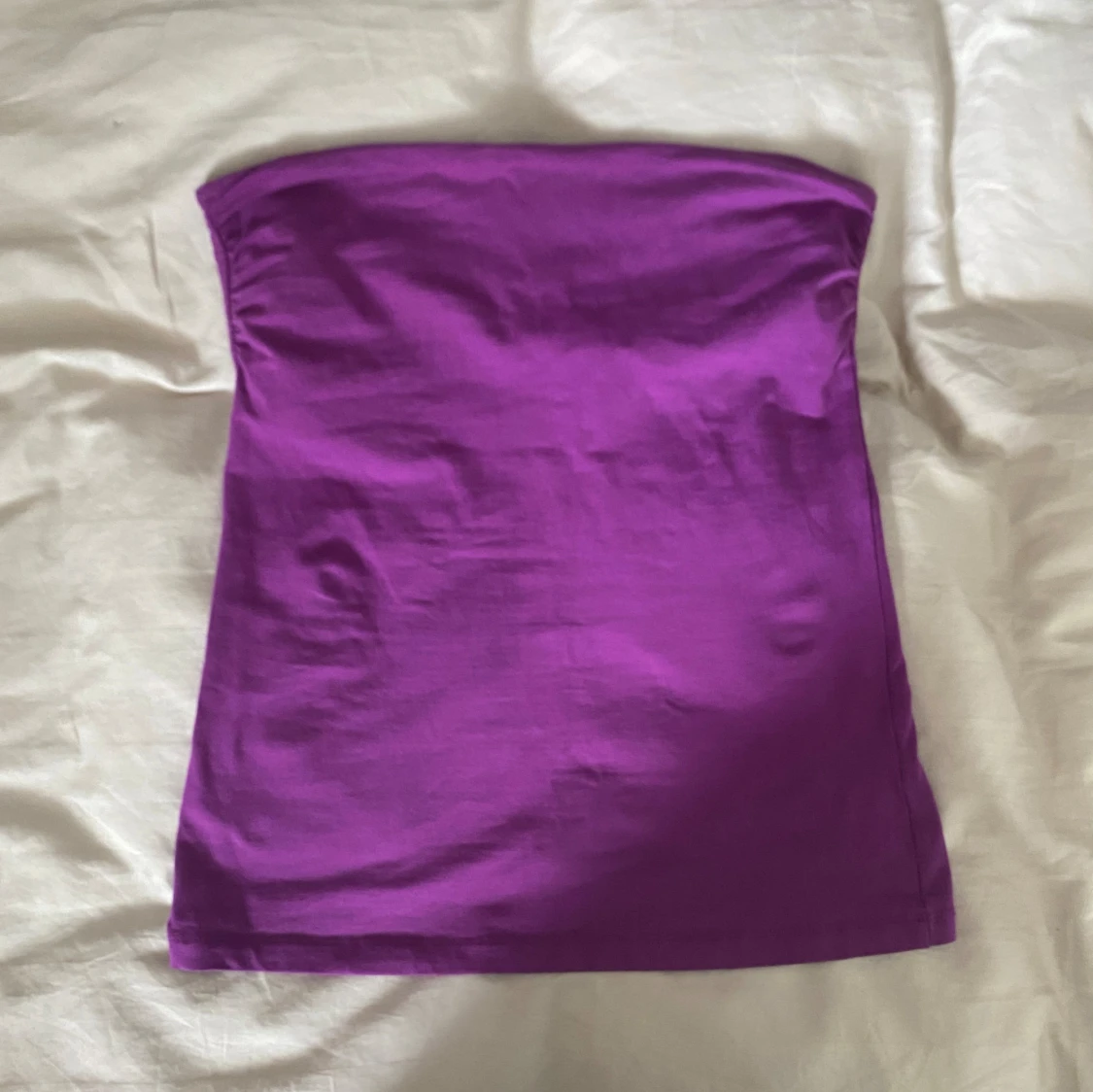 Säljer en snygg lila tubtopp som är perfekt för sommaren. Den har dubbeltyg och elastiskt band så den sitter bra. materialet är bekvämt och den har en tight passform, vilket gör den idealisk för både fest och vardag.