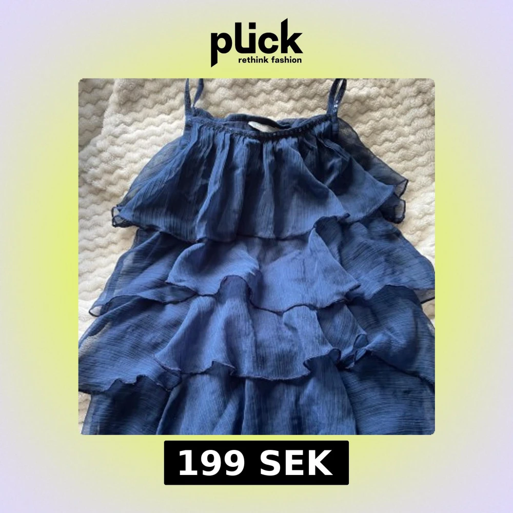 Supersöt blått linne från Lindex Kids med flera lager volanger och glansiga paljetter runt bandet. Toppen har en luftig och flowy känsla. Materialet är lätt och ger snygg rörelse när du går.