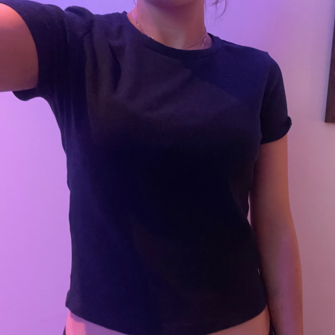 Säljer en marinblå ribbad t-shirt från Lindex i storlek 158/164 .säljer för 20kr😊