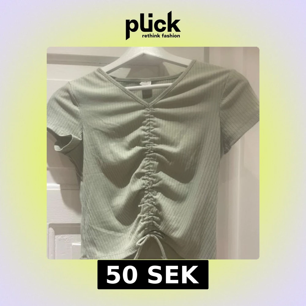 Snygg grön ribbad topp från Lindex med v-ringning och knytning framtill. Perfekt för en avslappnad stil. Kortärmad design som passar bra till både jeans och kjol.
