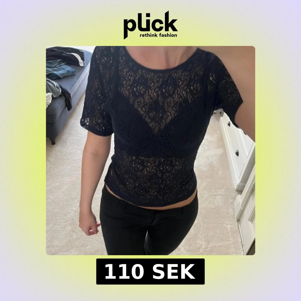Jättefin figursydd spetstopp i mörkblått!💓 Jag har sytt in den vilket syns på sista bilden men det är inget man märker. Den står som medium men då jag sytt den så är den som en S!☺️