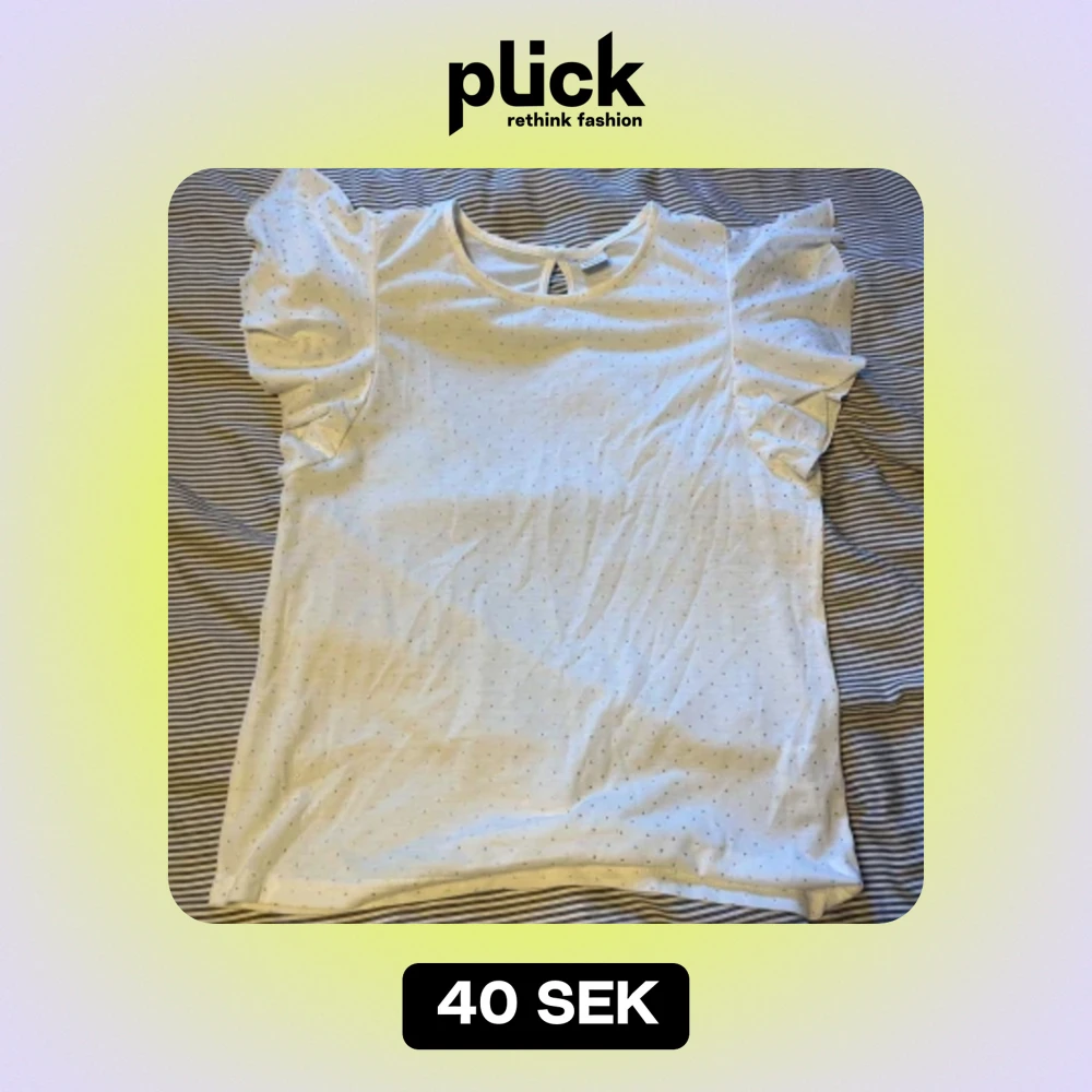 Säljer en söt vit topp från Lindex med små prickar över hela tyget. Toppen har korta ärmar med volangdetaljer och en liten knappöppning i nacken. Perfekt för en somrig look! 🌸
