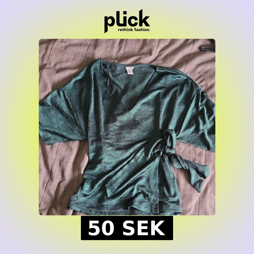 Snygg grön omlottopp från Lindex med knyt i midjan och korta ärmar. Toppen har en v-ringad hals och är tillverkad i ett mjukt, lätt material som ger en avslappnad känsla.