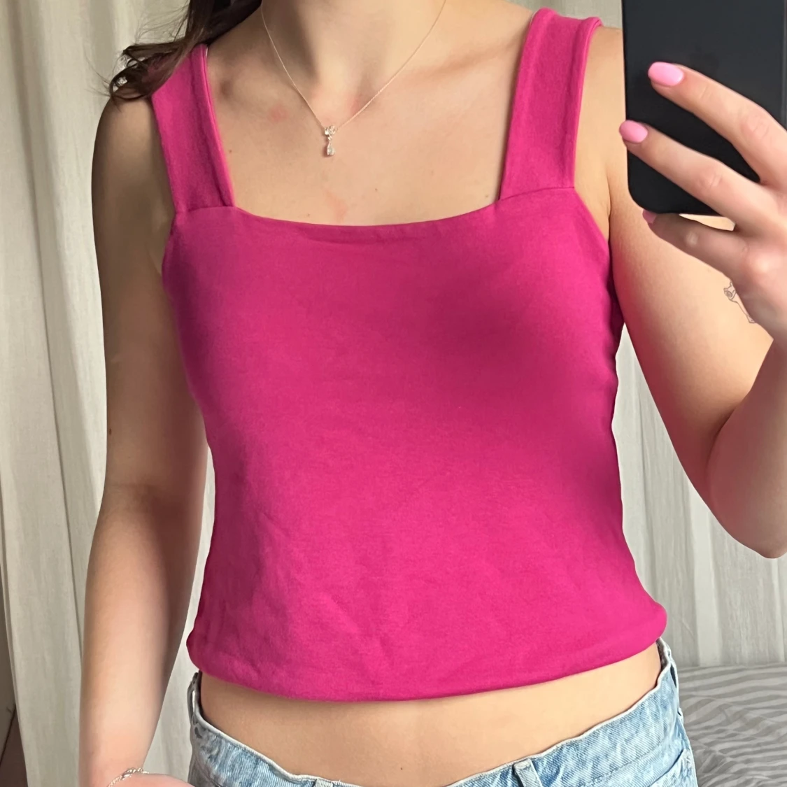 Säljer ett fint linne från Lindex. Linnet är i något tjockare tyg och är lite mer fyrkantig i modellen. Tjocka axelband. Använd någon enstaka gång🩷