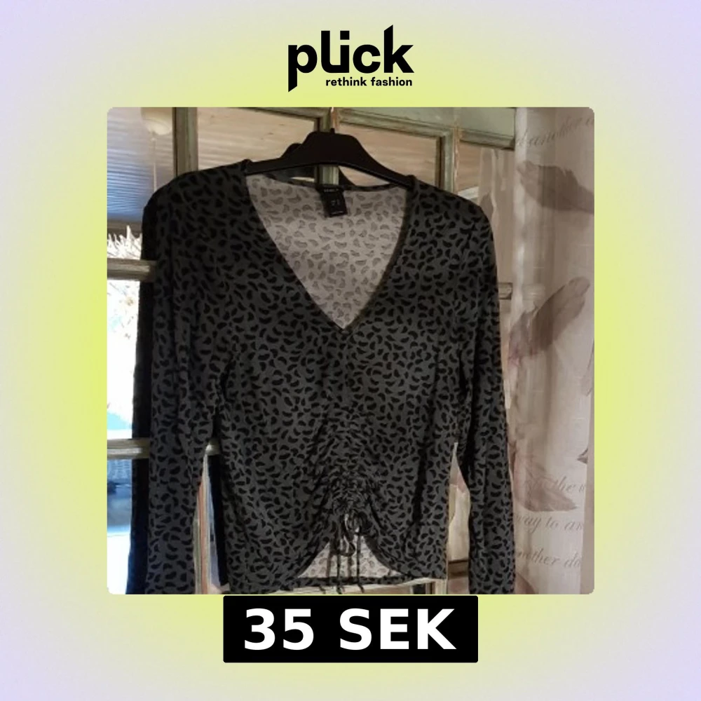 Snygg långärmad topp från Lindex i mörkgrönt med svart mönster. V-ringad och med cool snörningsdetalj framtill som ger en croppad känsla. Perfekt för dig som gillar att sticka ut med mönster och trendiga detaljer.
