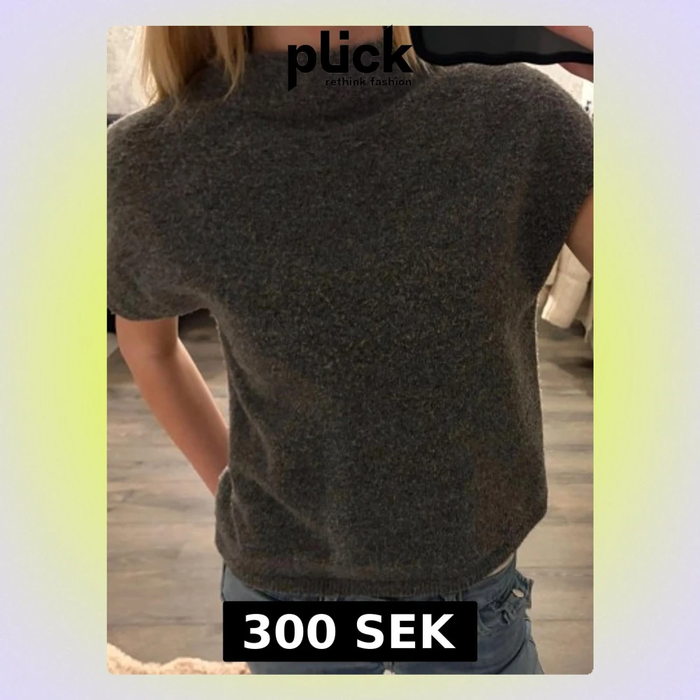 Mysig mörkgrå stickad topp från Lindex med korta ärmar och hög hals.