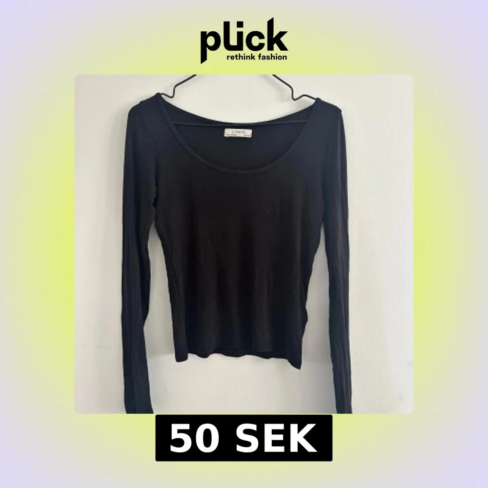 En svart, basic långärmad topp från Lindex med rundad, djup urringning. Sitter tight och är perfekt att styla med jeans eller kjol. Tunt och mjukt material som känns skönt mot huden. Enkel och stilren design som funkar till allt.
