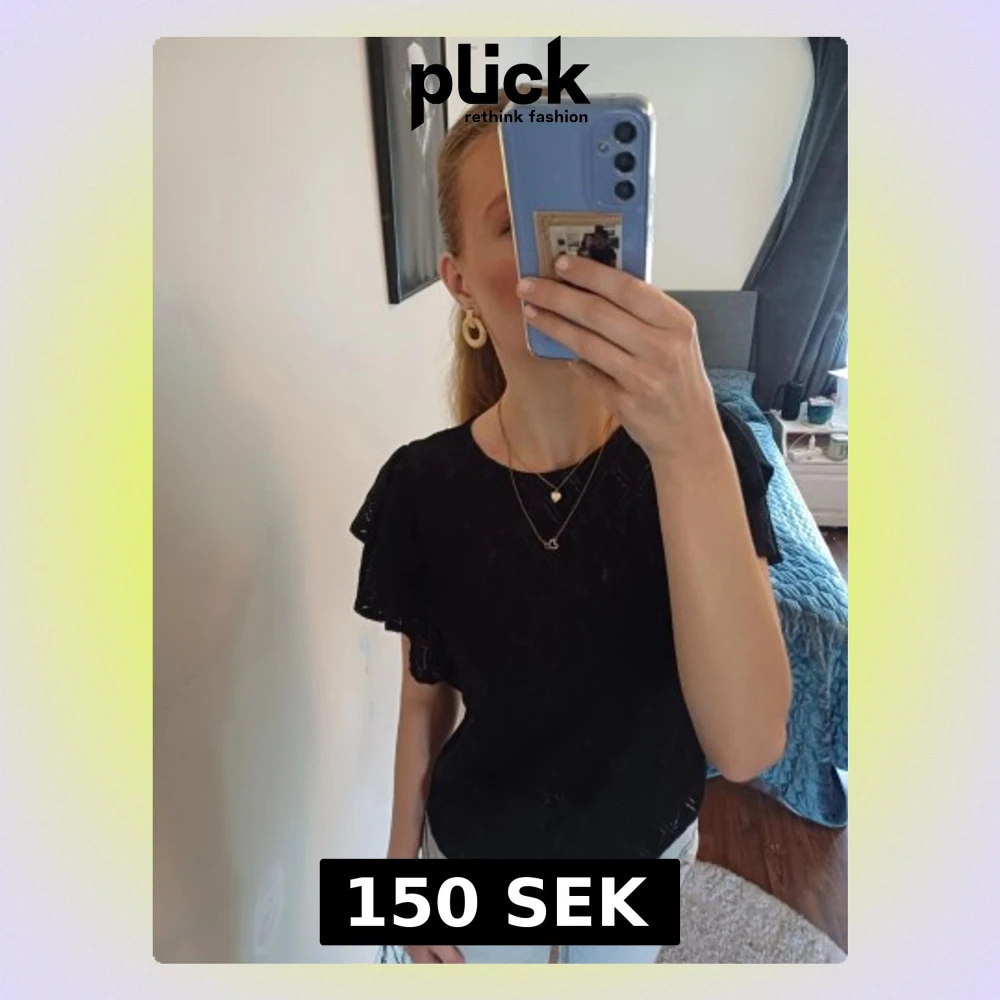Säljer en hjäte fin svart blus med diskret rutmönster och volangärmar. Blusen har rund halsringning och är tillverkad i ett lätt, luftigt tyg som känns bekvämt mot huden. Perfekt för nyår, fest eller vardagligt ❤️skriv om ni har frågor