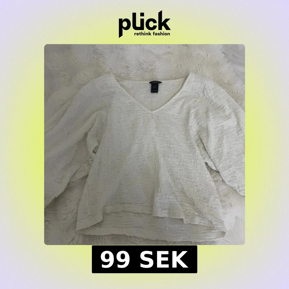 Säljer en vit blus från Lindex i storlek S. Blusen har v-ringning, lång puffärm och är gjord i ett krinklat, strukturerat tyg som ger en cool och avslappnad känsla. Perfekt att styla med jeans eller kjol för en trendig look.