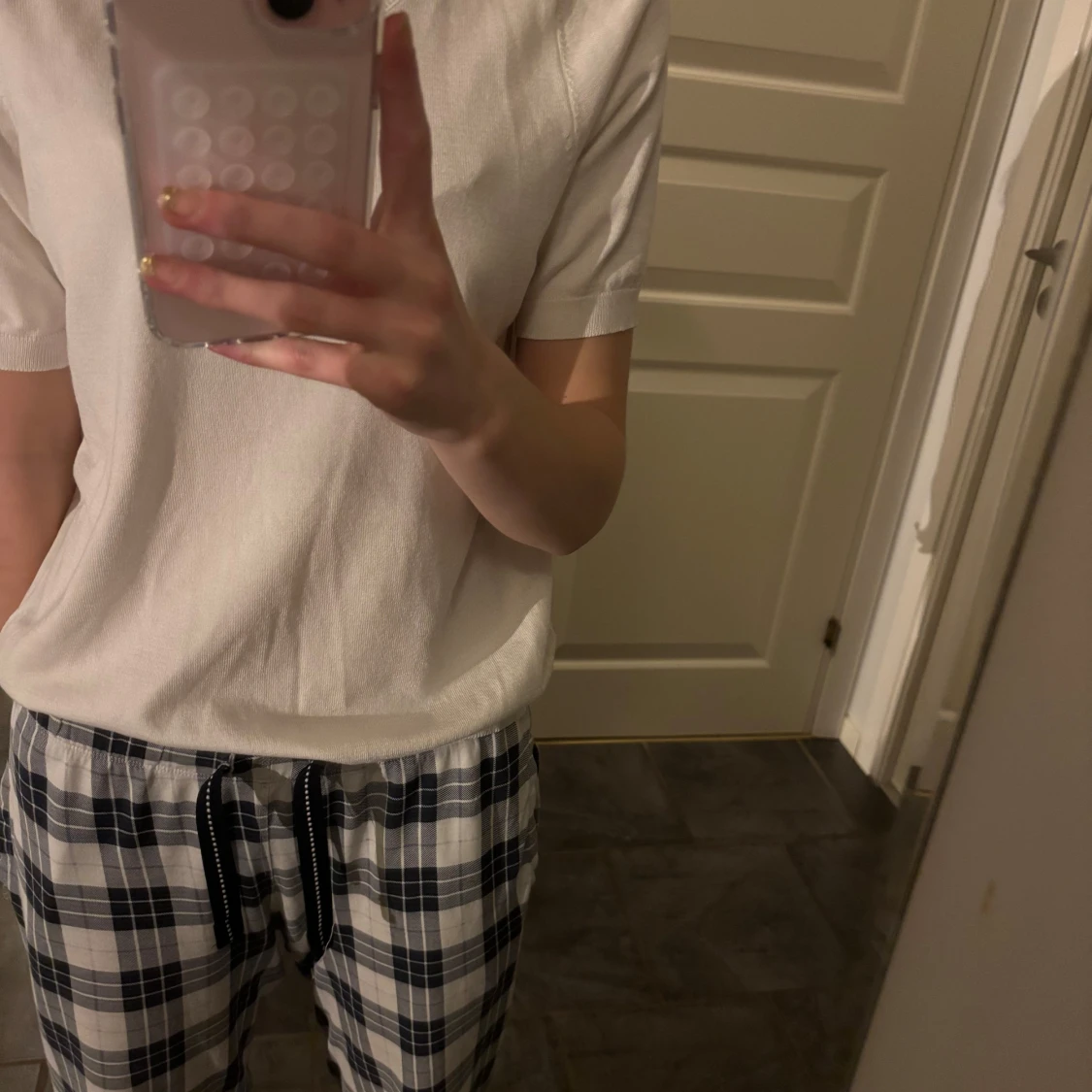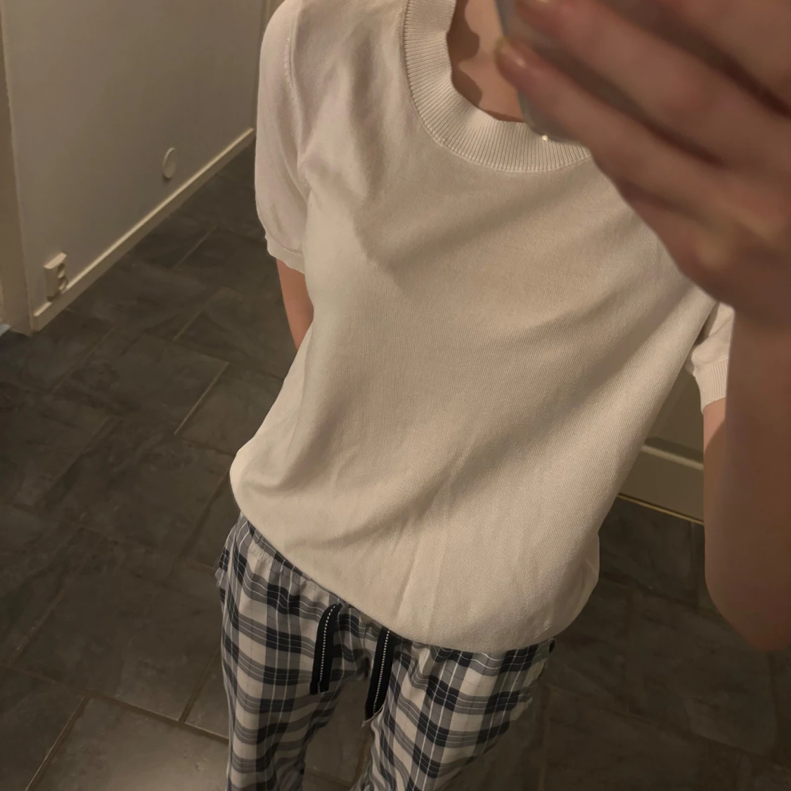 Säljer en enkel och stilren vit topp med korta ärmar. Perfekt för en avslappnad look. Toppen har en rund halsringning och är gjord i ett lite tjockare mjukt material. (Ett litet hål på baksidan men annars nästan oanvänd. Lätt att sy igen de lilla hålet)💗