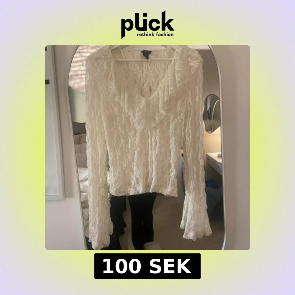 Säljer en romantisk vit spetsblus från Lindex i storlek S. Blusen har långärmade ärmar, v-ringad hals den är helt ny aldrig använt den kom för fler frågor 💕