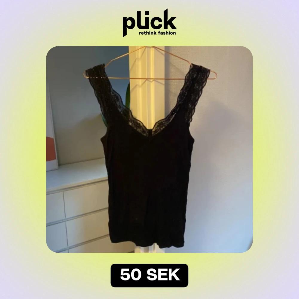 Ett gulligt svart ribbat linne med spets i uringningen. Från lindex, använd några gånger men inga skador eller så💕