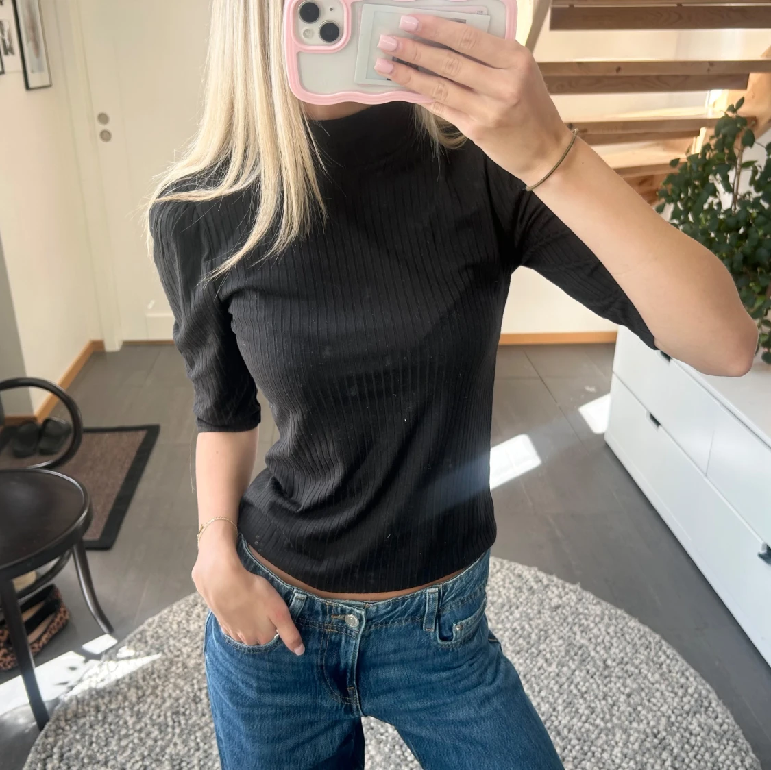 Snygg topp med halvlånga ärmar och lite högre hals