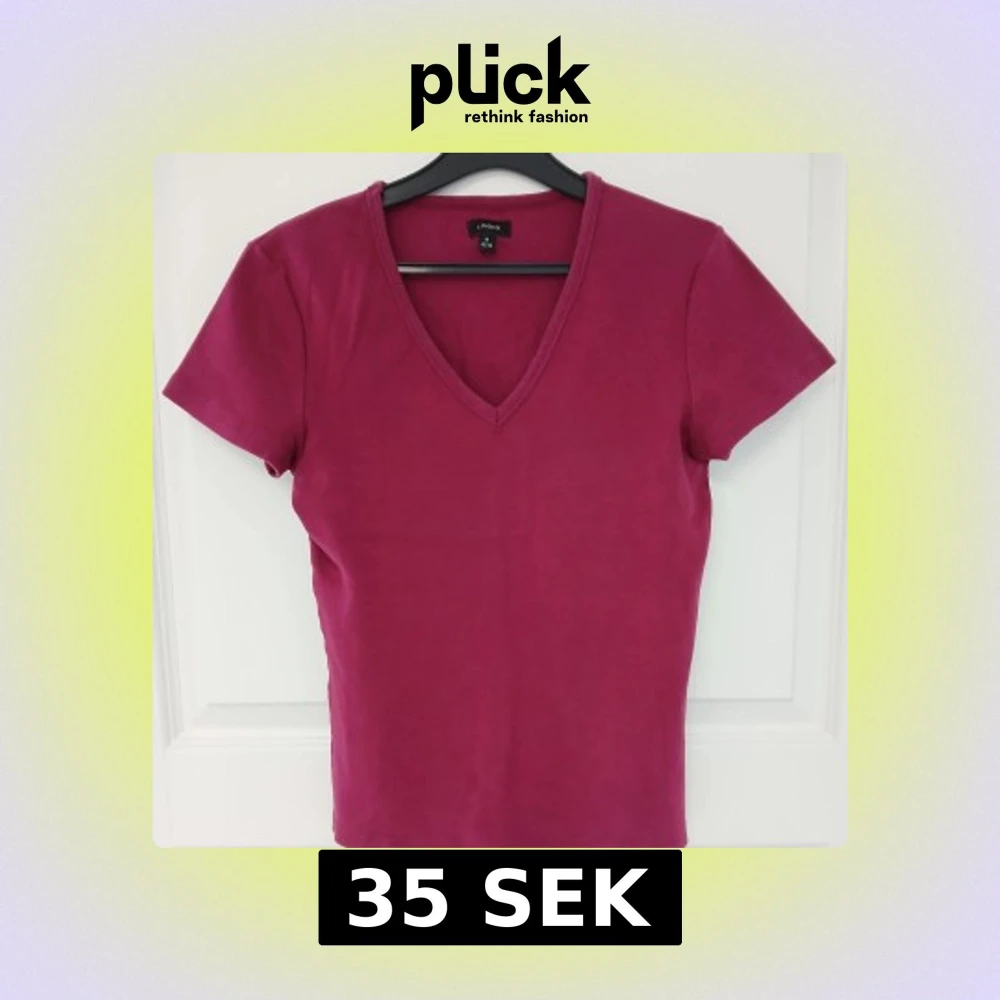 En stilren rosa topp med v-ringning och korta ärmar. Tillverkad i mjuk bomull (95 %) och elastisk elastan (5 %). Perfekt att matcha med jeans eller kjol för en snygg look. Toppen har naturligtvis tvättats. Se bilder för skick och passform. Storlek M enligt lappen men då måttet armhåla till armhåla är cirka 41 cm så stämmer XS-S bättre. Axelsöm till ärmslut är cirka 15 cm. Tvättas i 40 grader.