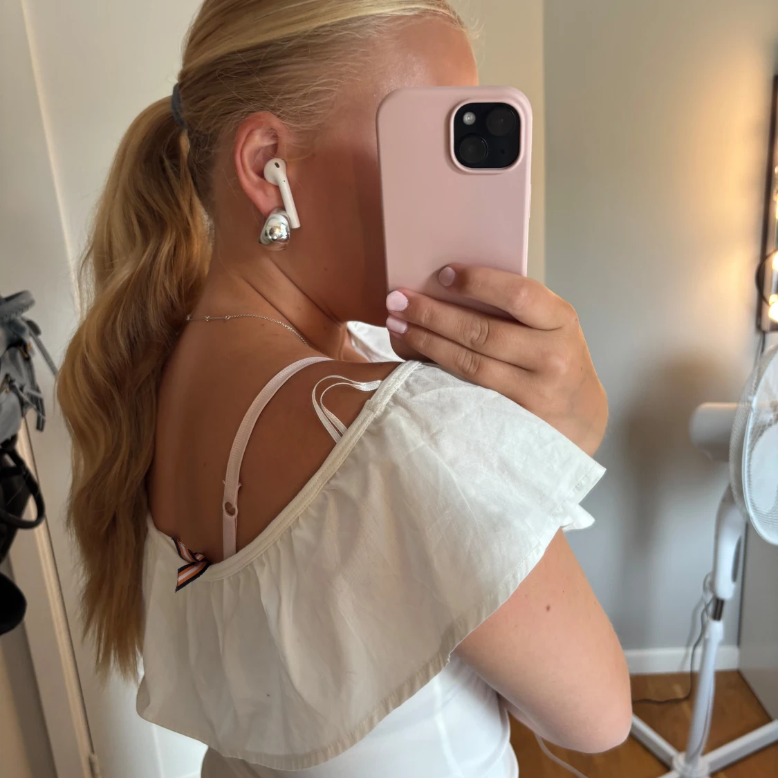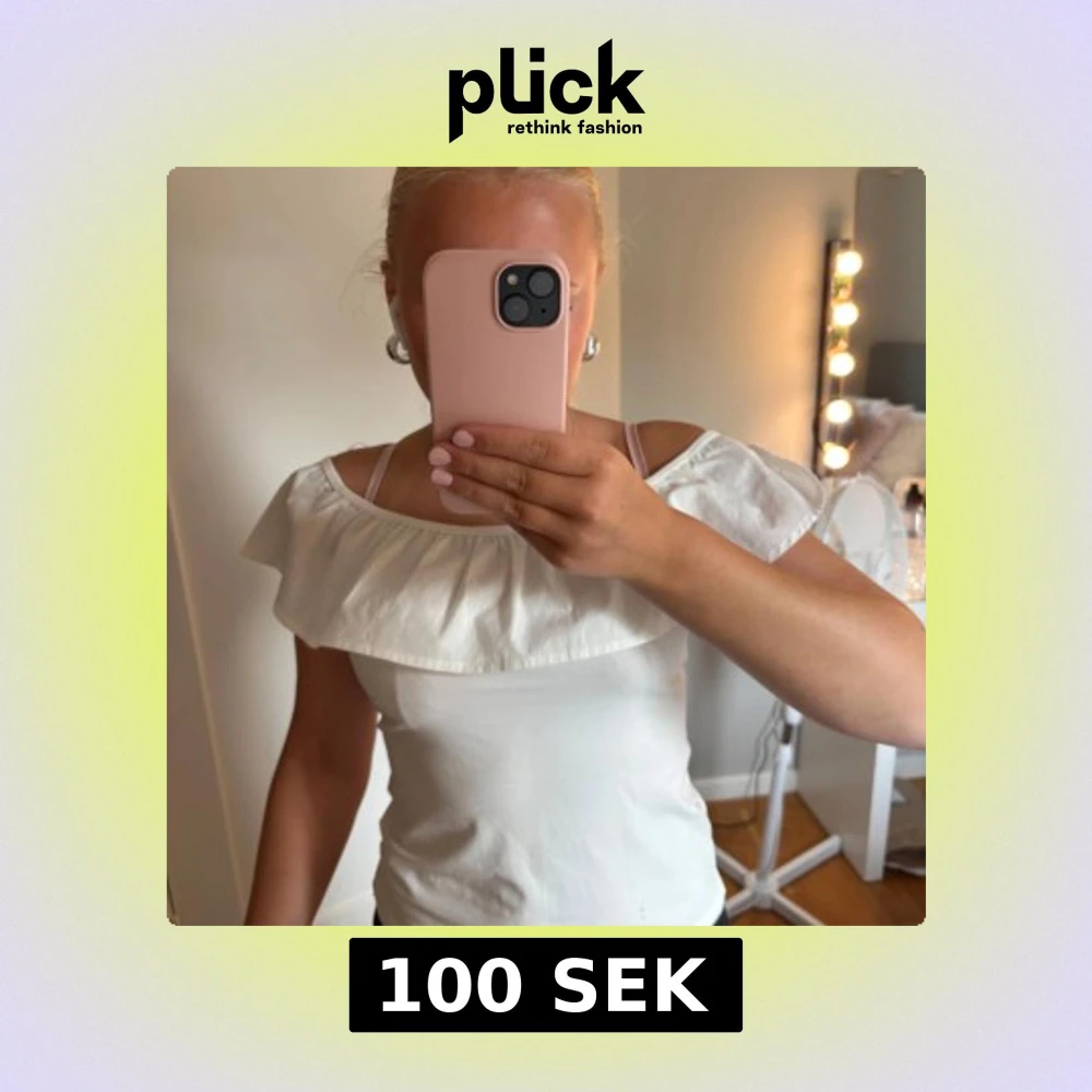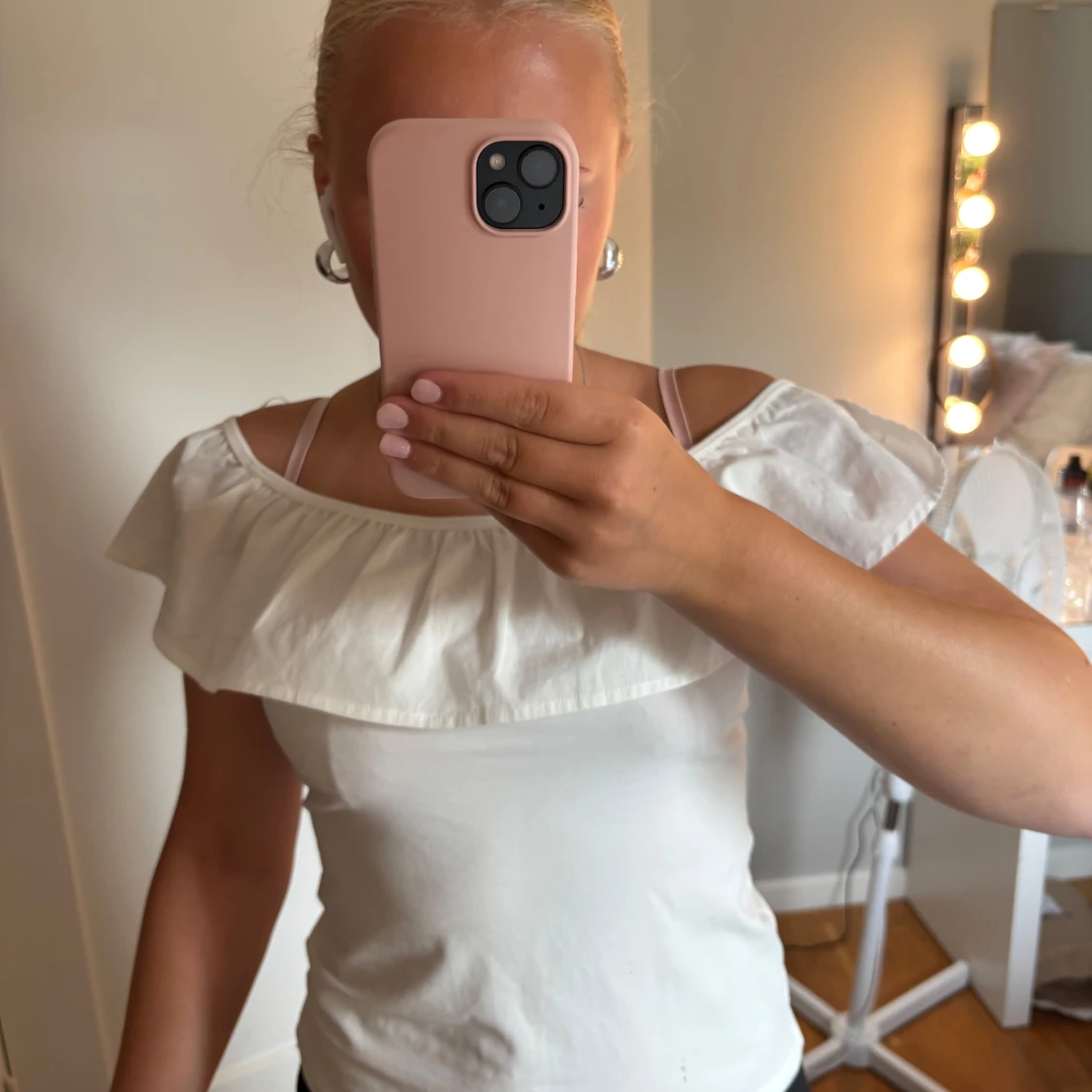 Helt oanvĂ€nd endast provad, vit offshoulder topp med volangđ€