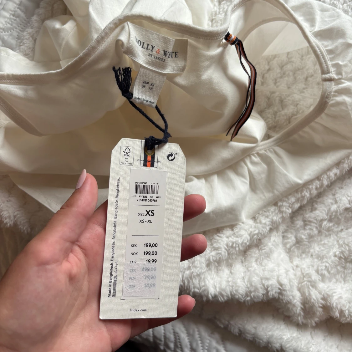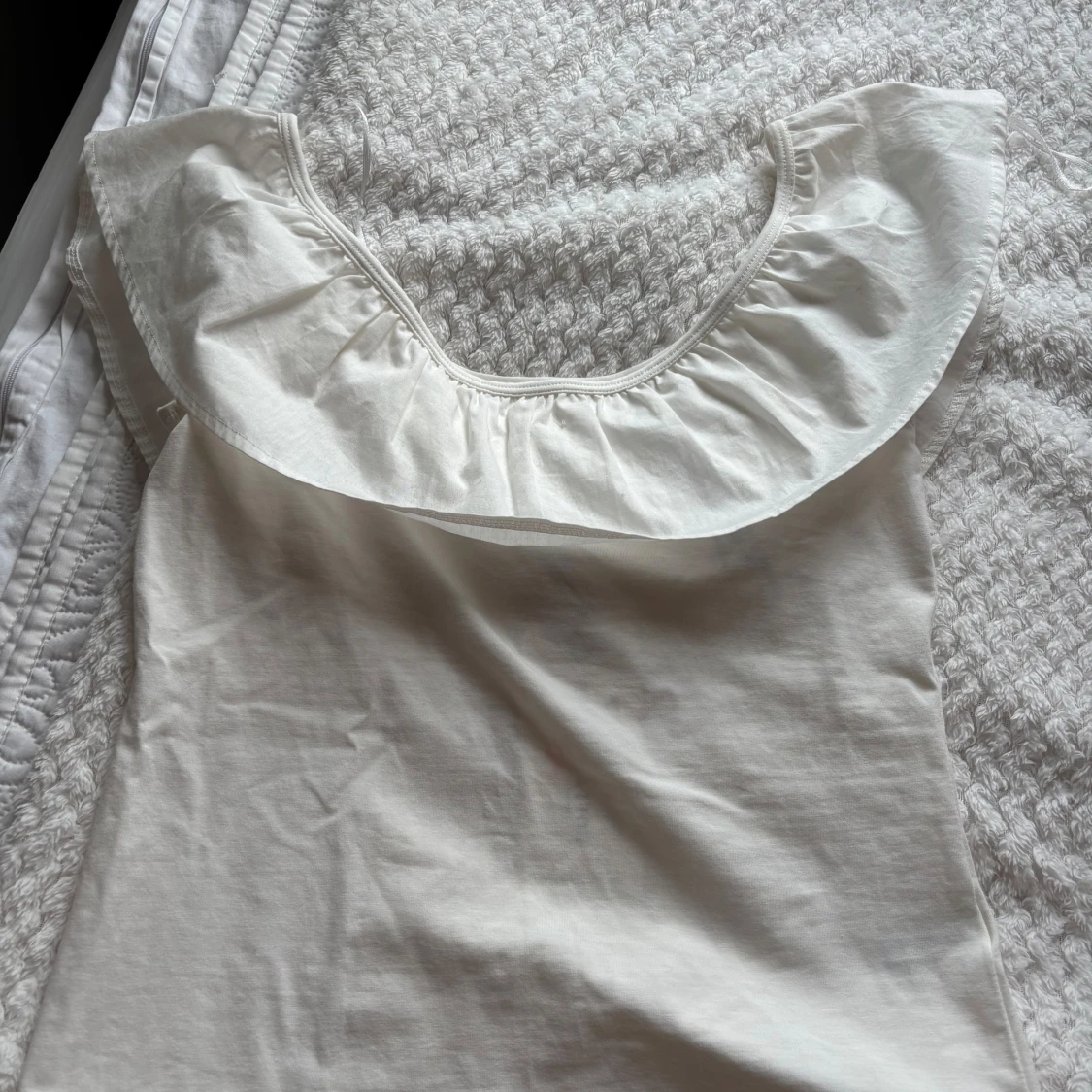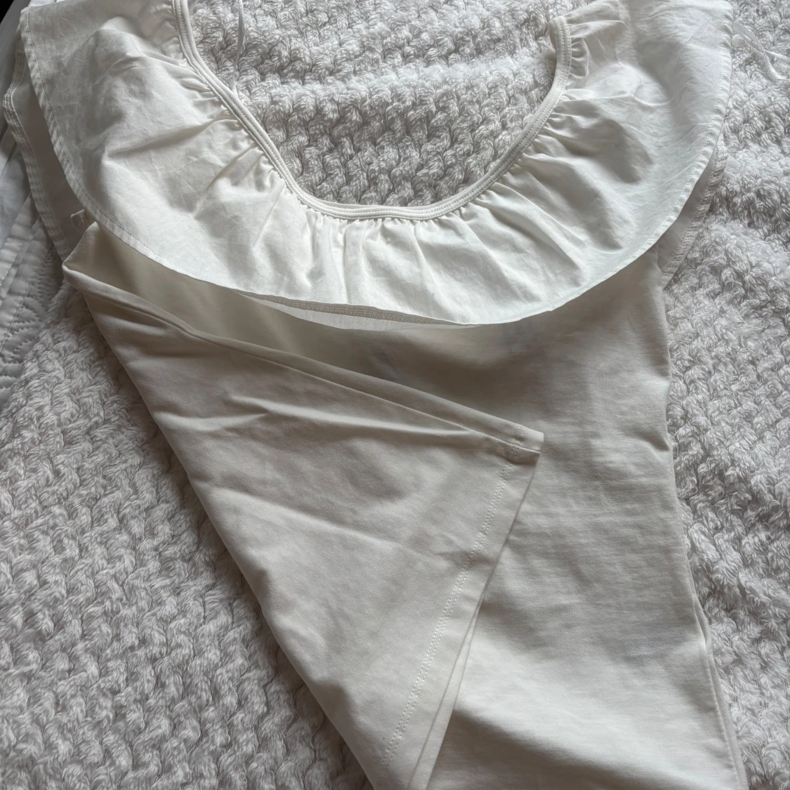 Helt oanvĂ€nd endast provad, vit offshoulder topp med volangđ€