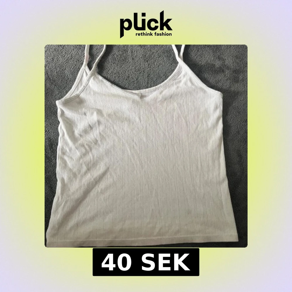 Säljer en vit ribbad linnetopp från Lindex i storlek XS. Toppen har smala axelband, v-ringning och ett diskret mönster i tyget perfekt för varma dagar.