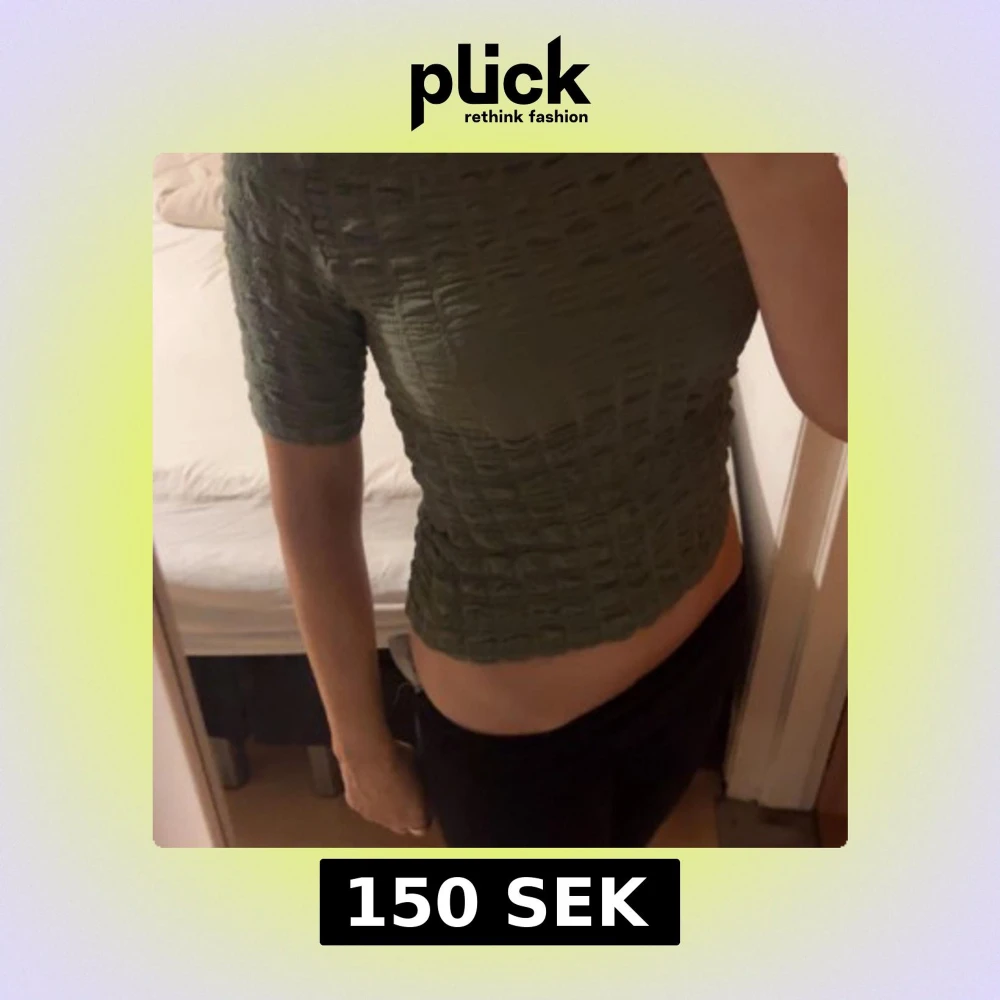 Säljer en grön Bubble top. Toppen har en tight passform. Materialet känns mjukt och har en unik textur som syns💗aldrig använd!