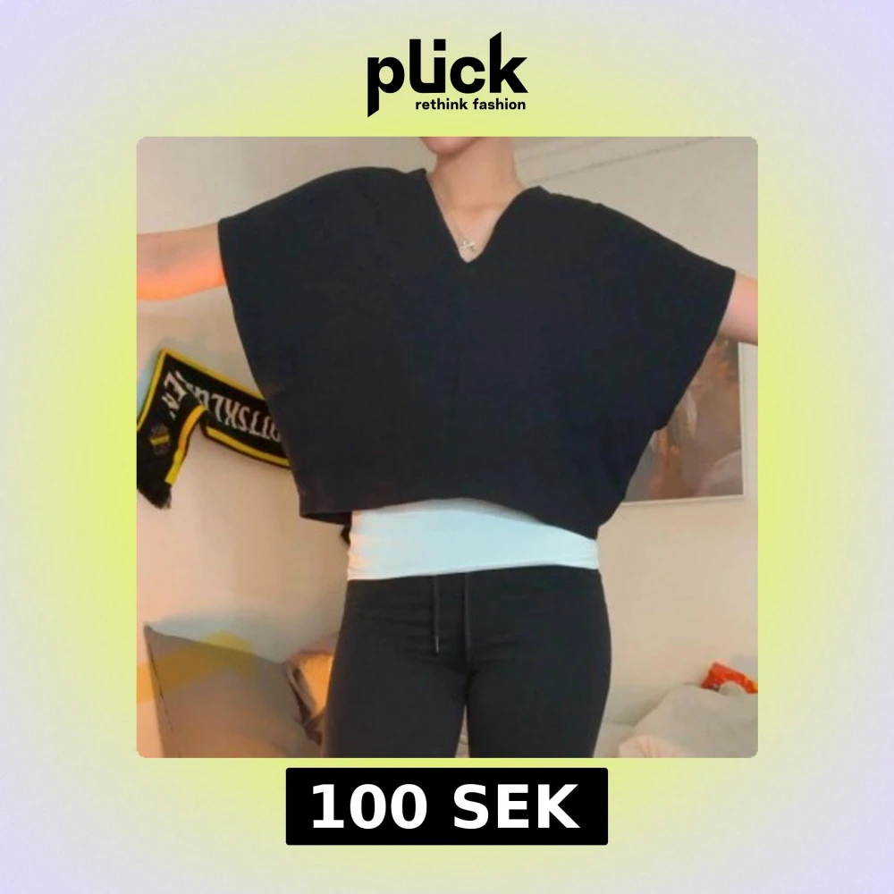 Svart topp med breda, korta ärmar. Toppen har en snygg v-ringad hals men jag har valt allt bära den bak och fram.