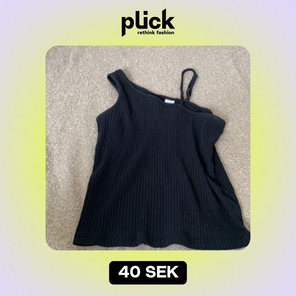 En svart ribbad oneshoulder topp från Lindex. Toppen har en enkel axelbandslös design med en justerbar rem på ena sidan. Tillverkad av ett bekvämt och stretchigt material.