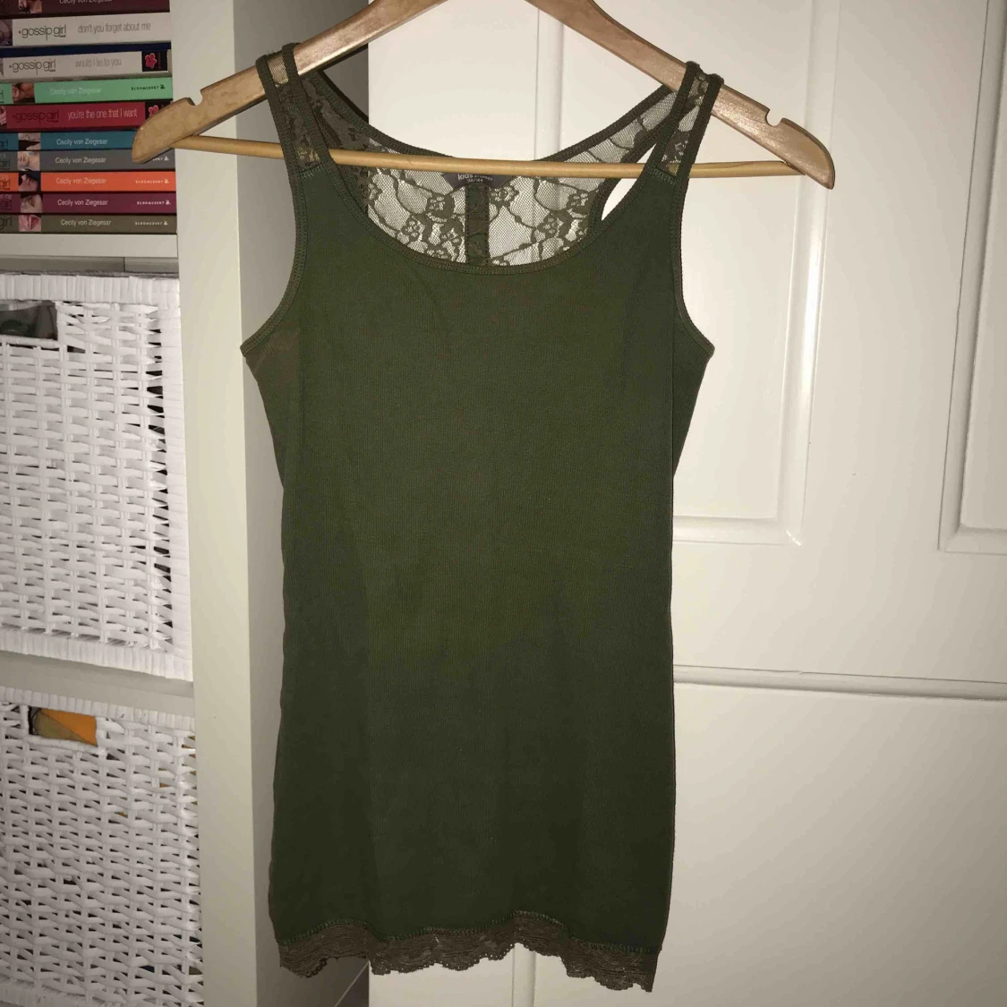 Snyggt linne i höstig militärgrön färg med spets! Storlek XS från Lindex🌿