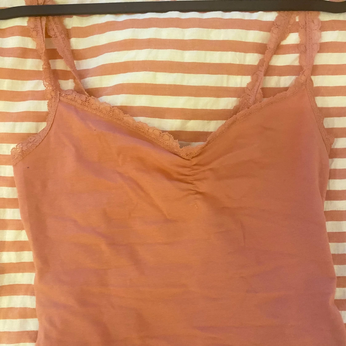 Jättefin rosa linnetopp från Bershka med smala axelband och spetsdetaljer längs urringningen. Toppen är inte använd. Säljer eftersom passar inte min stil längre.