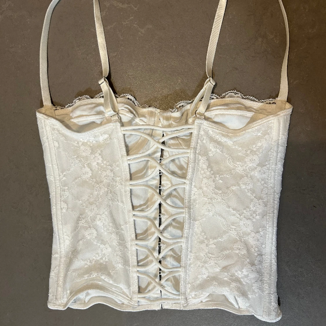 Säljer denna vit korsett från shein, obs lite böjd på sidan (se bild 1)💗
