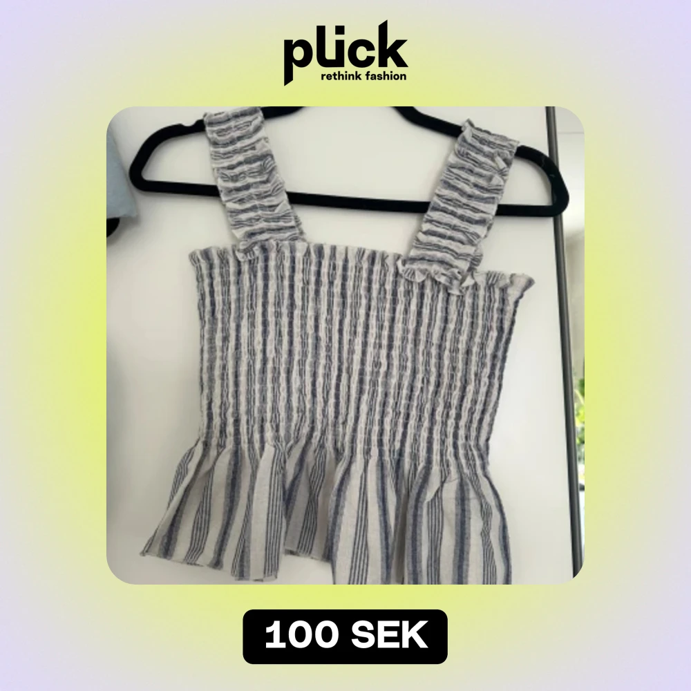 Blårandigt gulligt smockat linne som ej kommer till använing